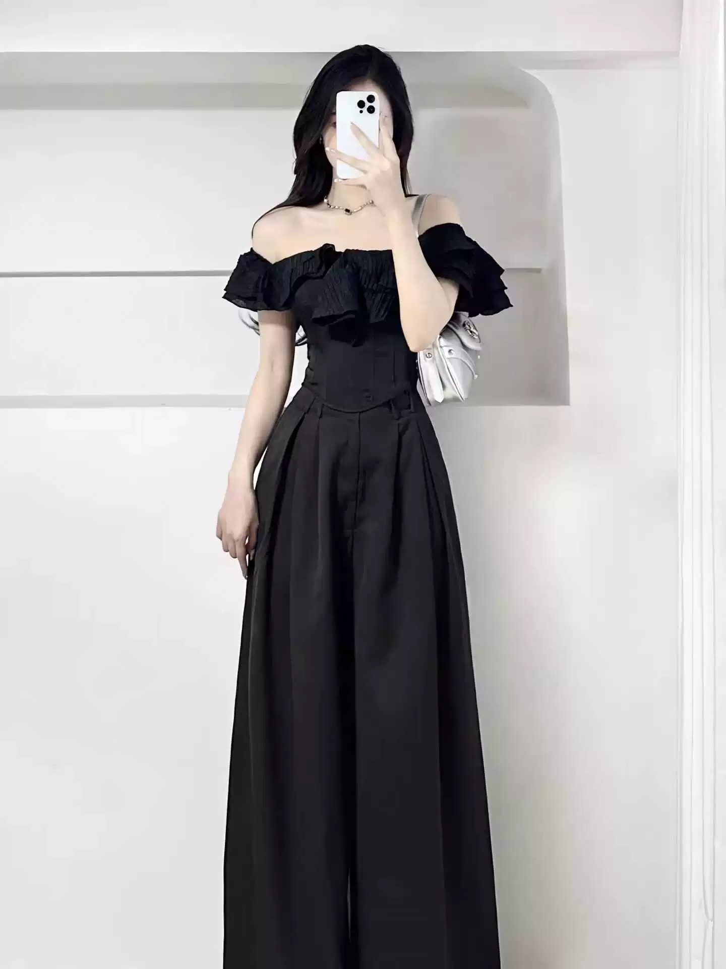 Off-shoulder waist-cinching lace short top Yujie casual fishbone