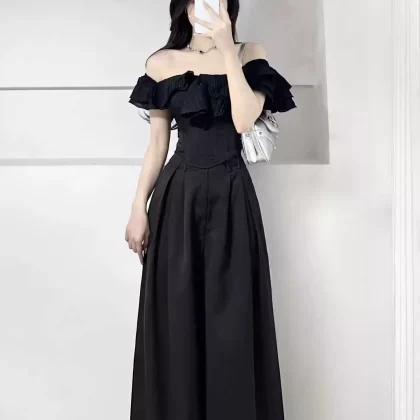 Off-shoulder waist-cinching lace short top Yujie casual fishbone