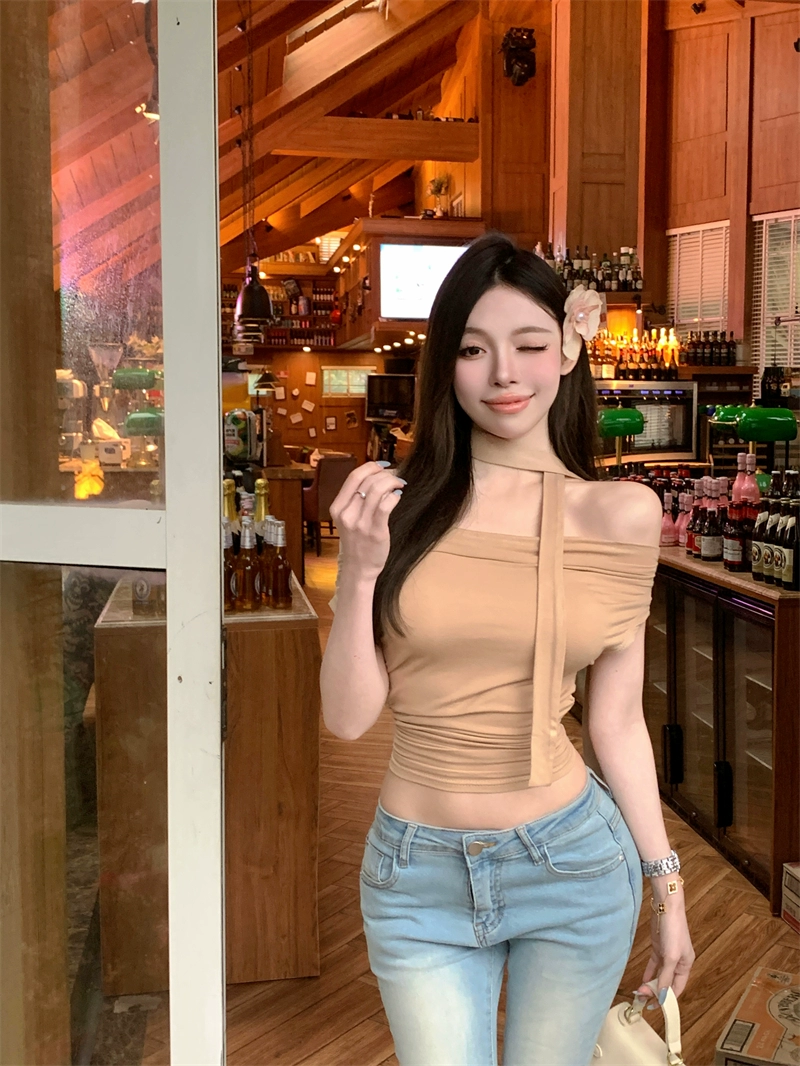 | nameOriginal | Off-shoulder white summer pleated top short-sleeved T-shirt |