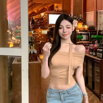 | nameOriginal | Off-shoulder white summer pleated top short-sleeved T-shirt |