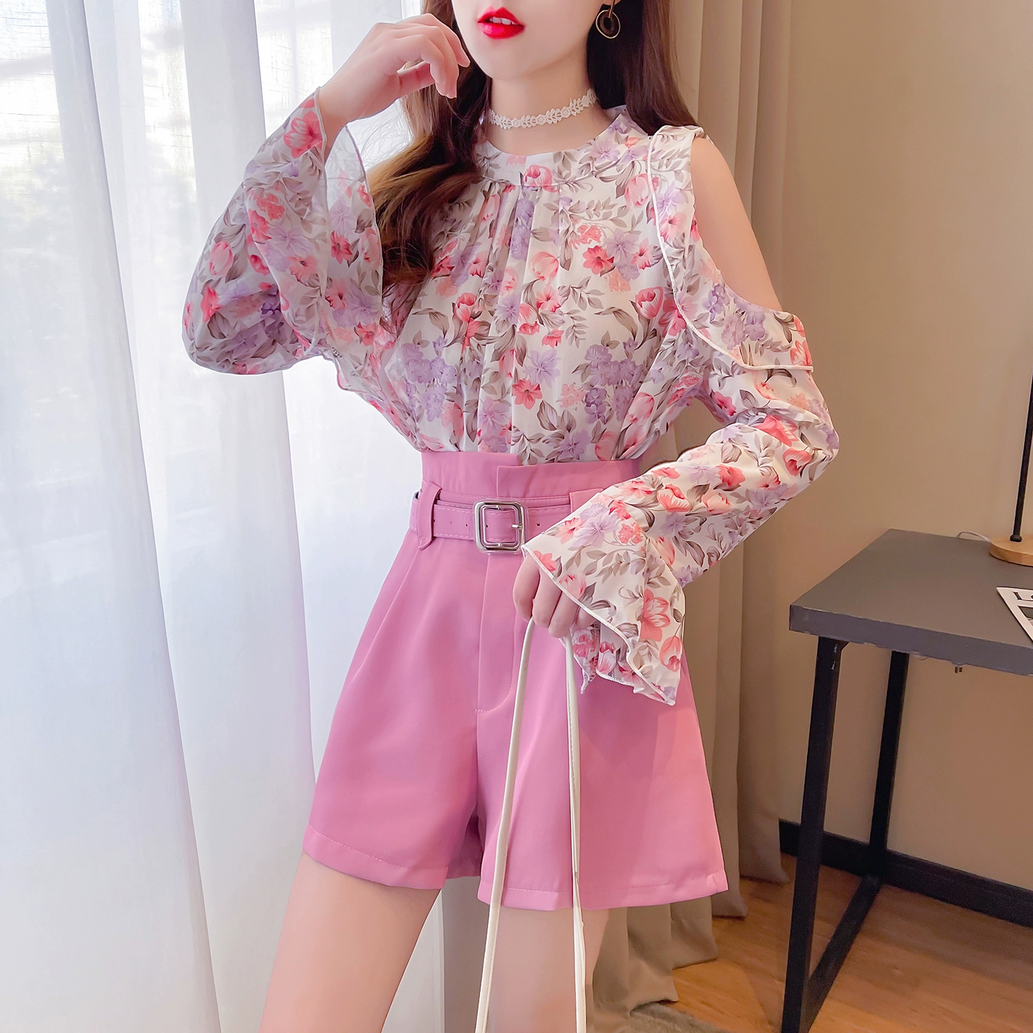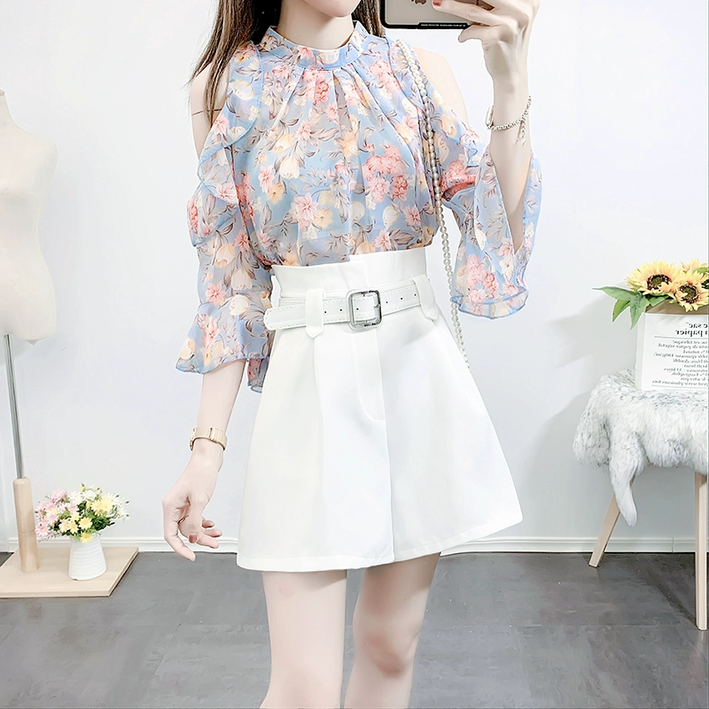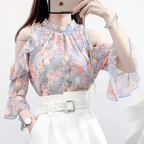 | nameOriginal | Off-shoulder wide-leg Hepburn style goddess style chiffon shirt |