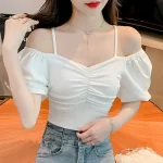 Off-the-shoulder 2024 summer new style short-sleeved slim suspenders