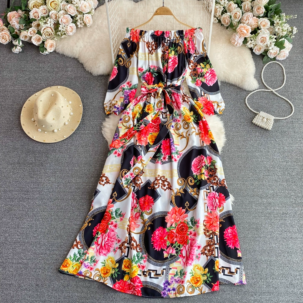 | nameOriginal | Off-the-shoulder A-line elegant seaside resort dress |
