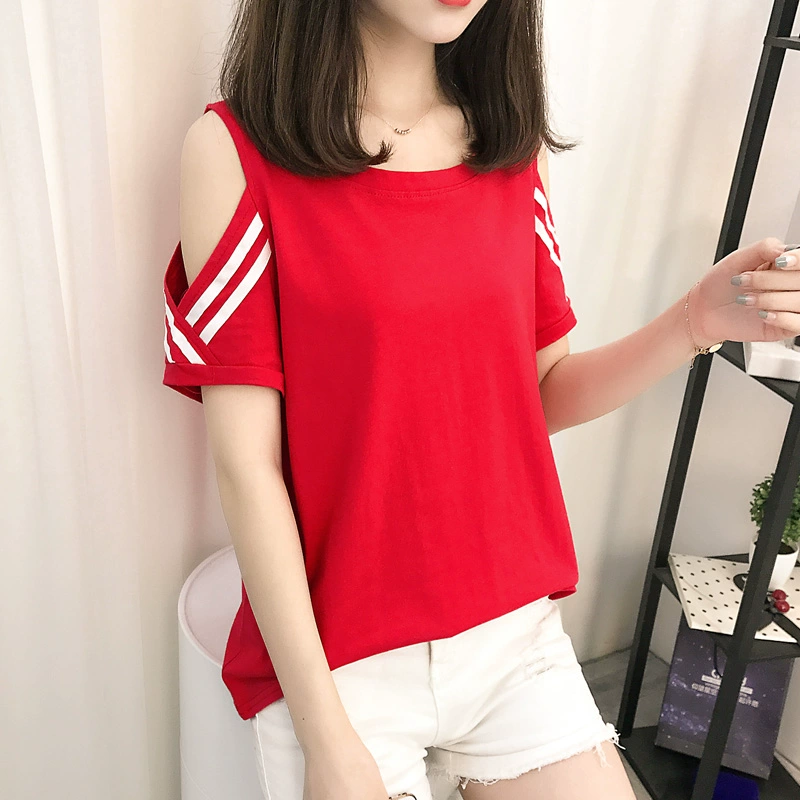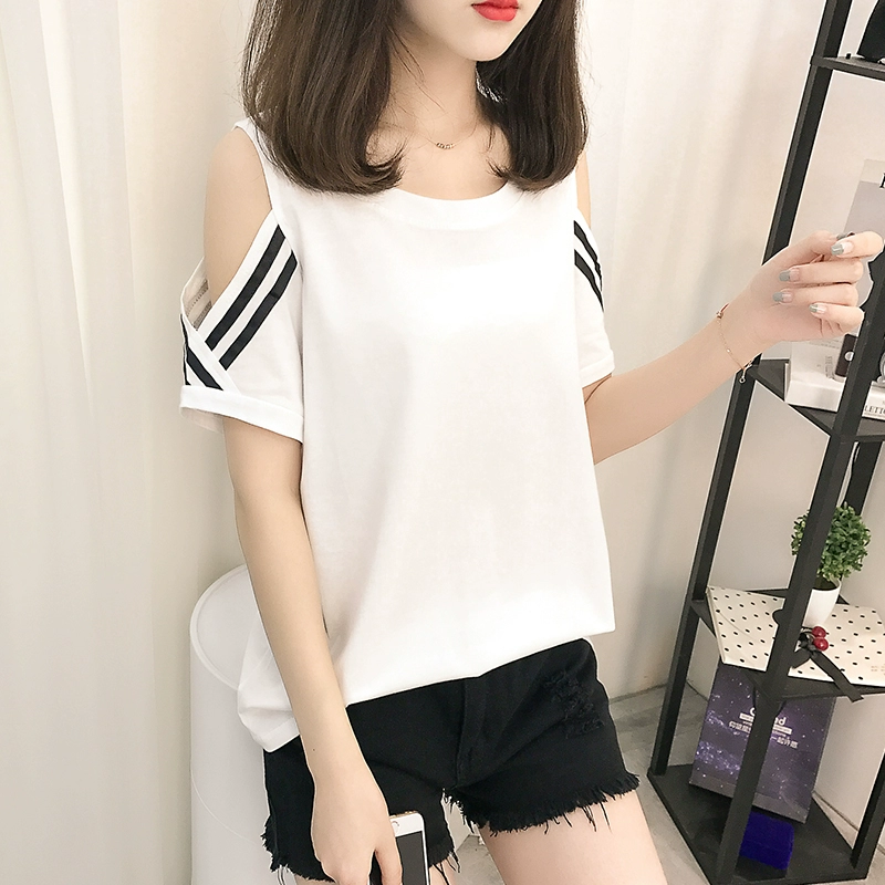 | nameOriginal | Off-the-shoulder baby round neck short-sleeved loose cotton top |