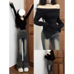 | nameOriginal | Off-the-shoulder black long-sleeved one-neck thin slim fit top |