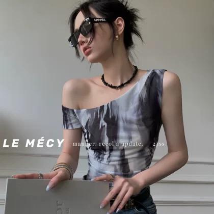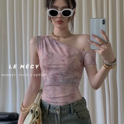 | nameOriginal | Off-the-shoulder design, smudged slim fit women's summer mesh |