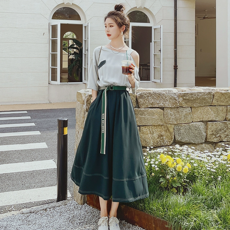 | nameOriginal | Off-the-shoulder dress women's summer slimming suit platycodon |
