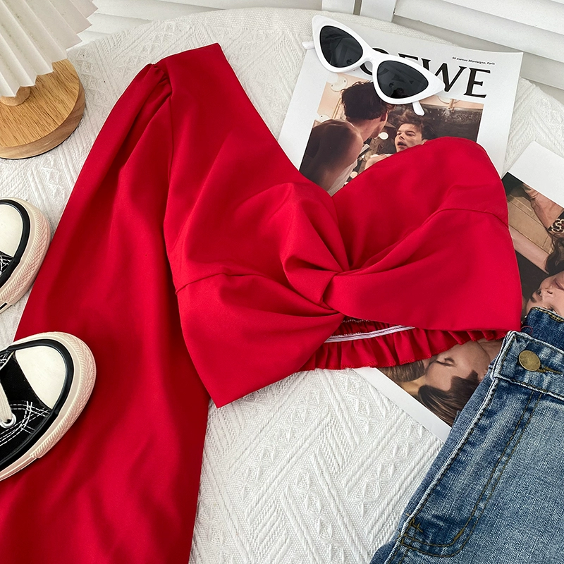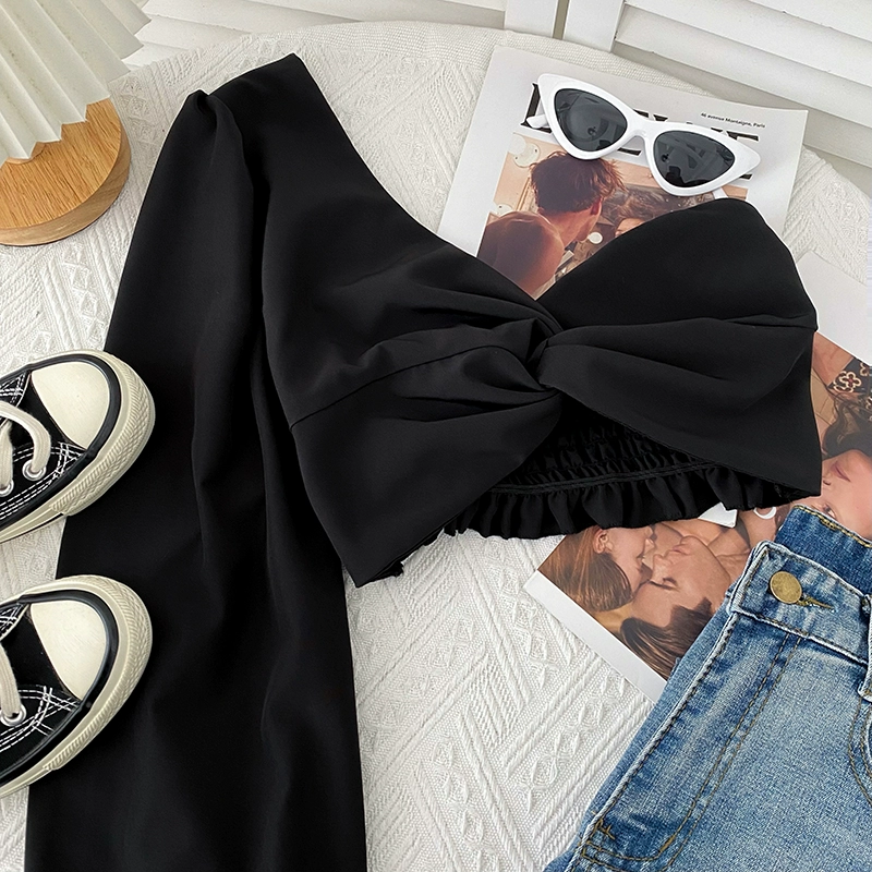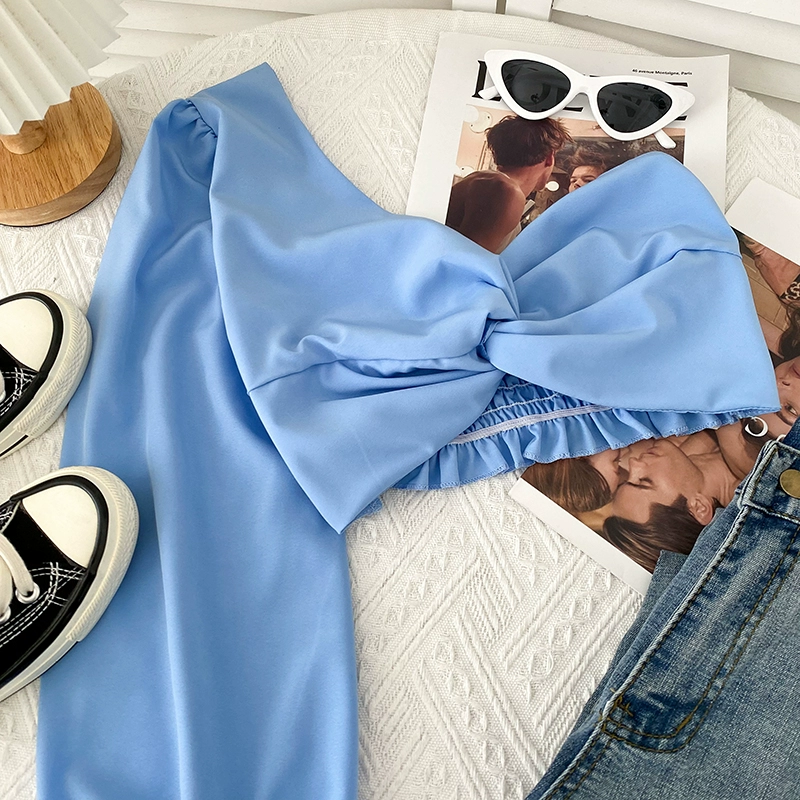 | nameOriginal | Off-the-shoulder European and American cross-knotted slim-fit irregular shirt |