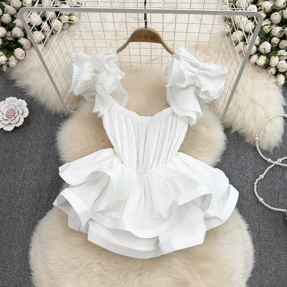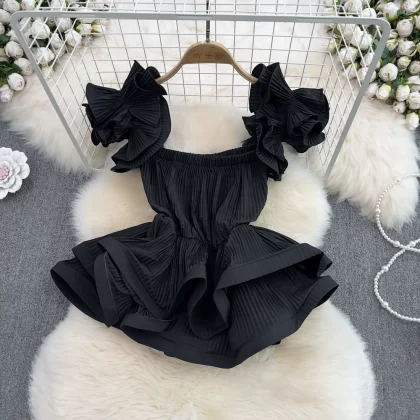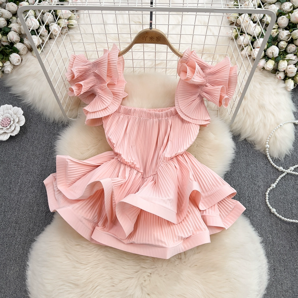 | nameOriginal | Off-the-shoulder European and American-style pleated ear-hem waist suspender belt |