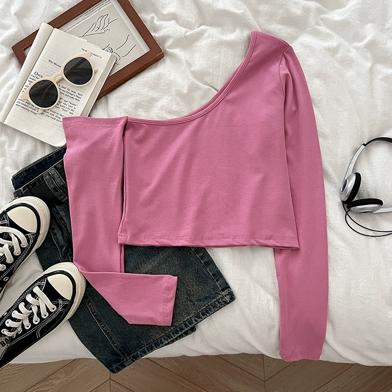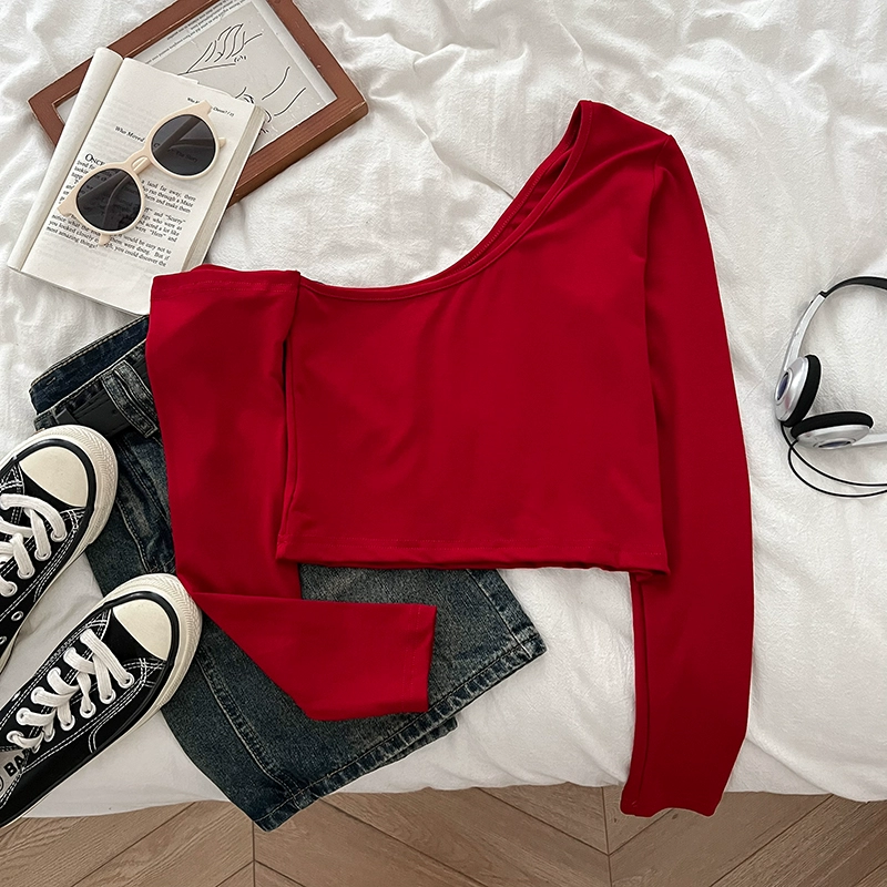 Off-the-shoulder fashion slim fit autumn and winter long-sleeved T-shirt