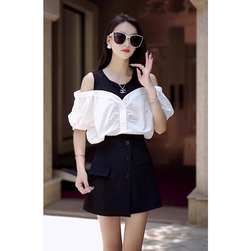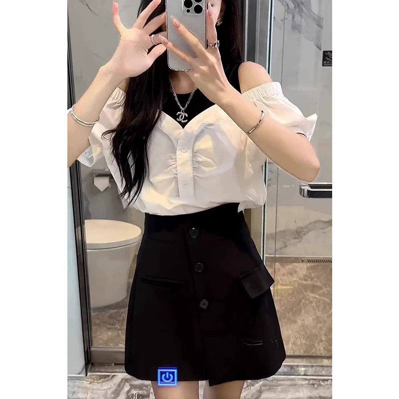 | nameOriginal | Off-the-shoulder French chic short-sleeved white shirt fake two-piece |