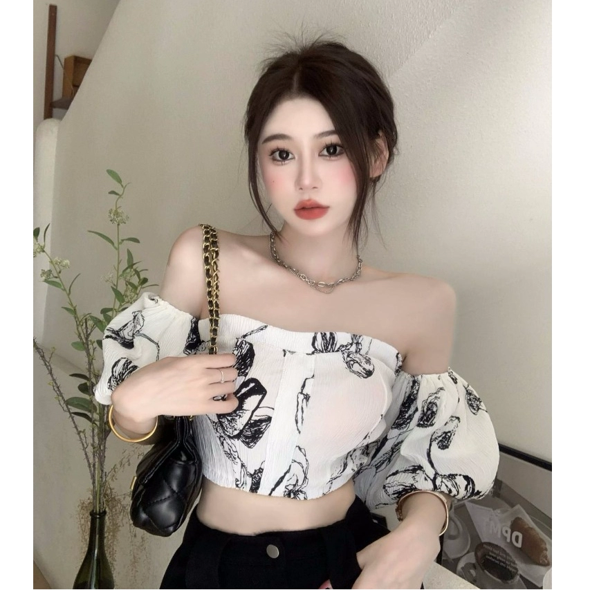 Off-the-shoulder French coffee break short sweet hottie stunning shirt