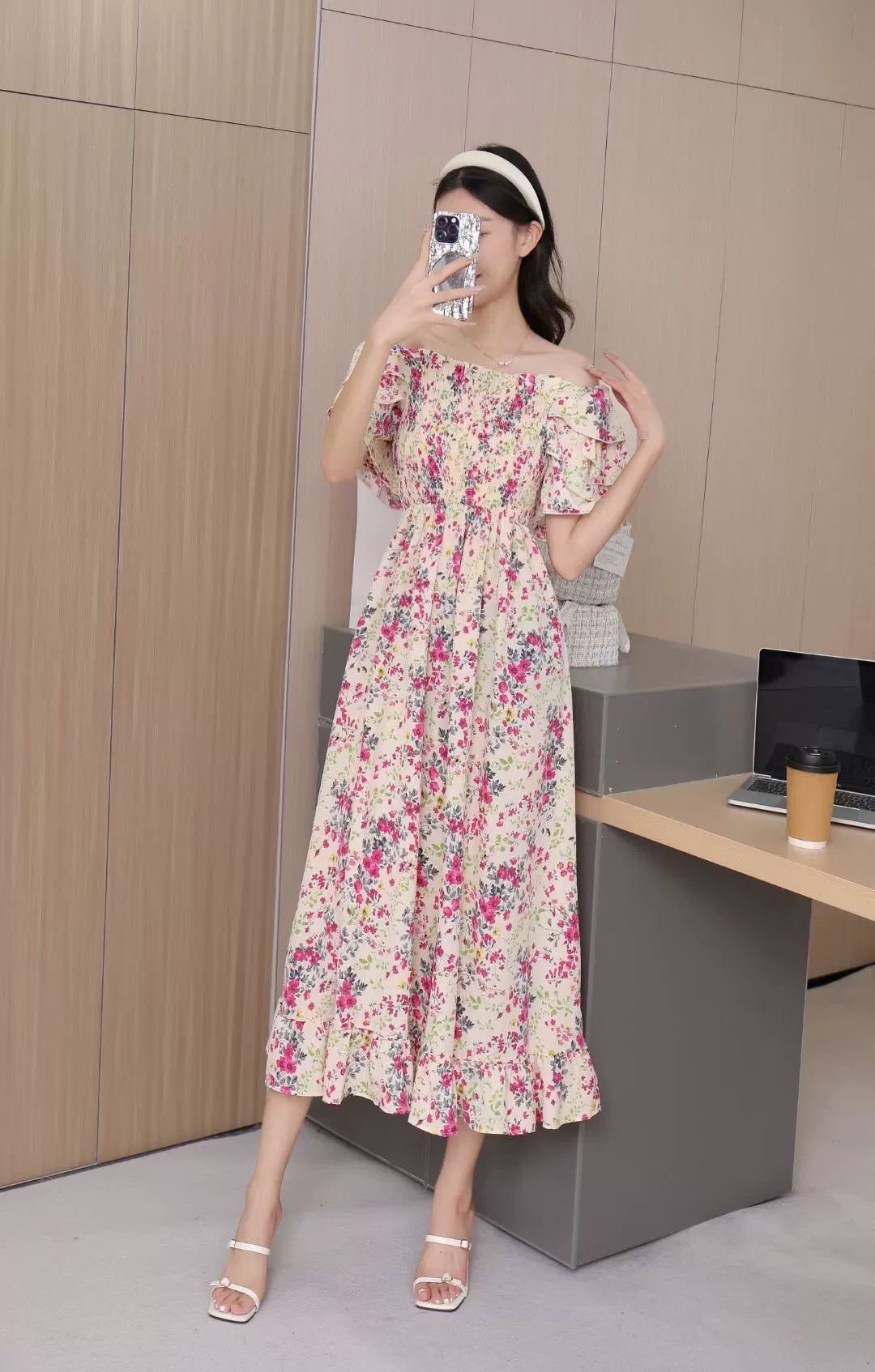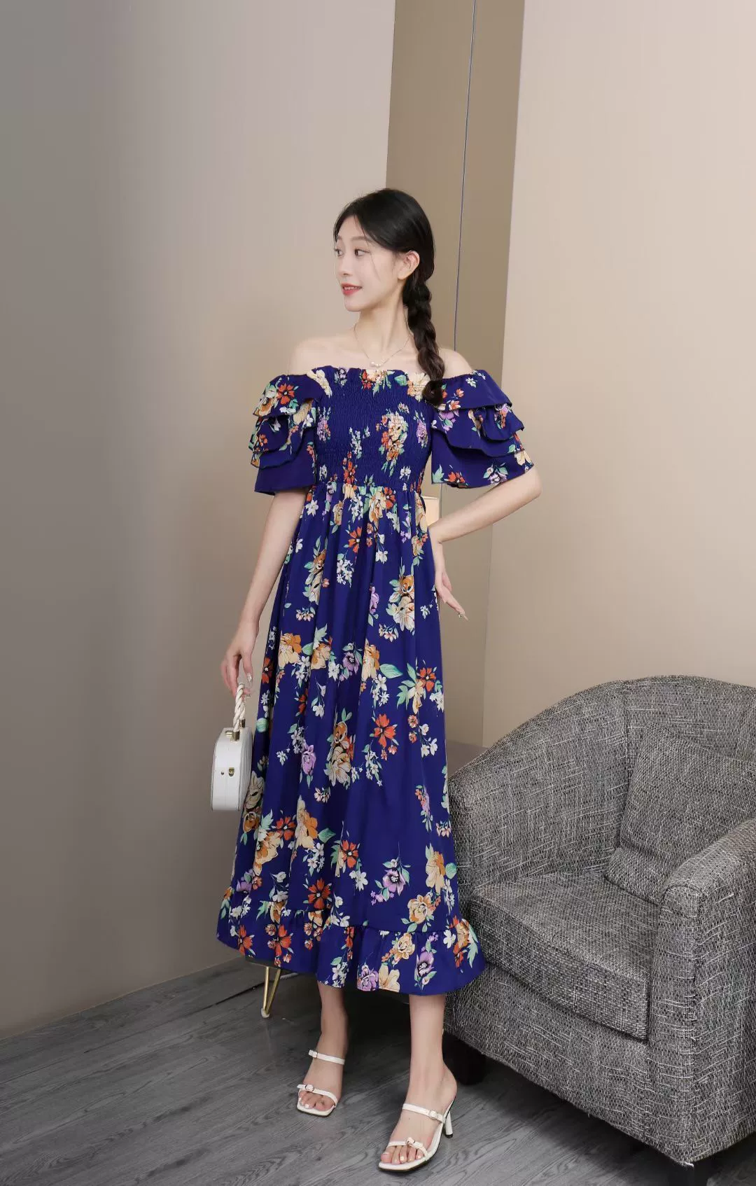 | nameOriginal | Off-the-shoulder, high-waisted, slimming, versatile A-line dress |