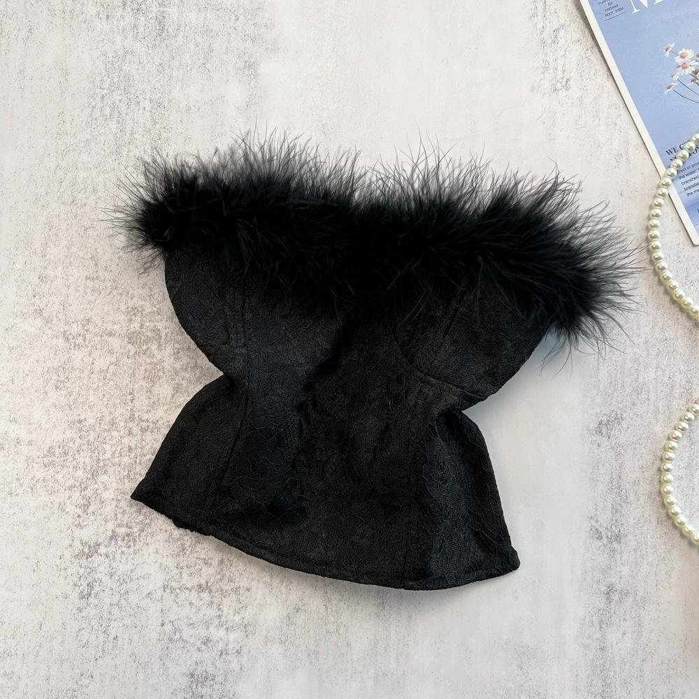 | nameOriginal | Off-the-shoulder hottie's furry patchwork slim-fitting and chic tube top |
