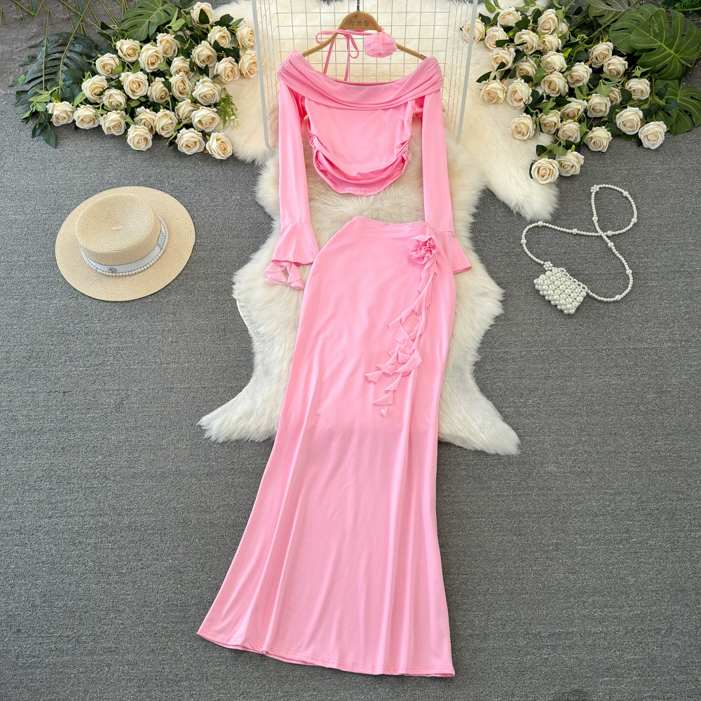 | nameOriginal | Off-the-shoulder long-sleeved slim-fitting hip-hugging fashion suit with slits |