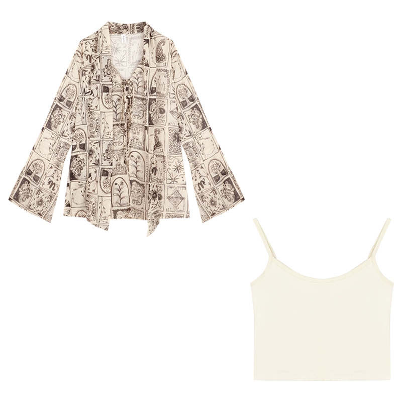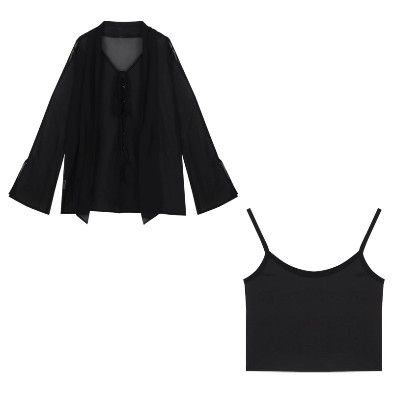 | nameOriginal | Off-the-shoulder long-sleeved suspender two-piece chiffon shirt set |