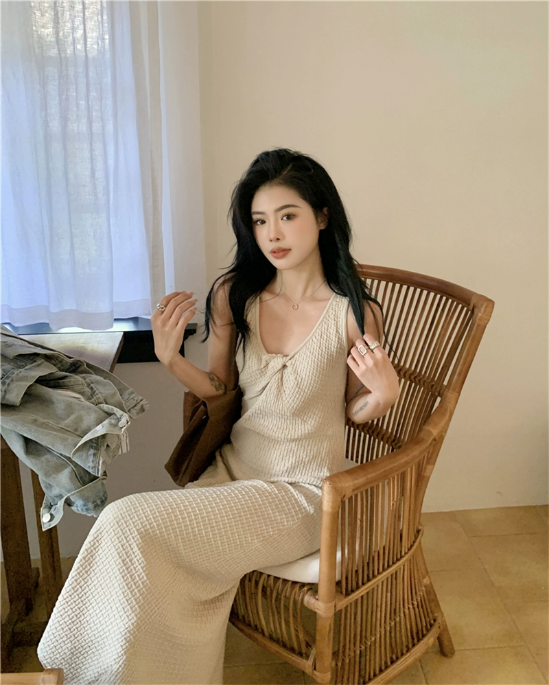 | nameOriginal | Off-the-shoulder long slim-fitting twist knit sleeveless skirt |