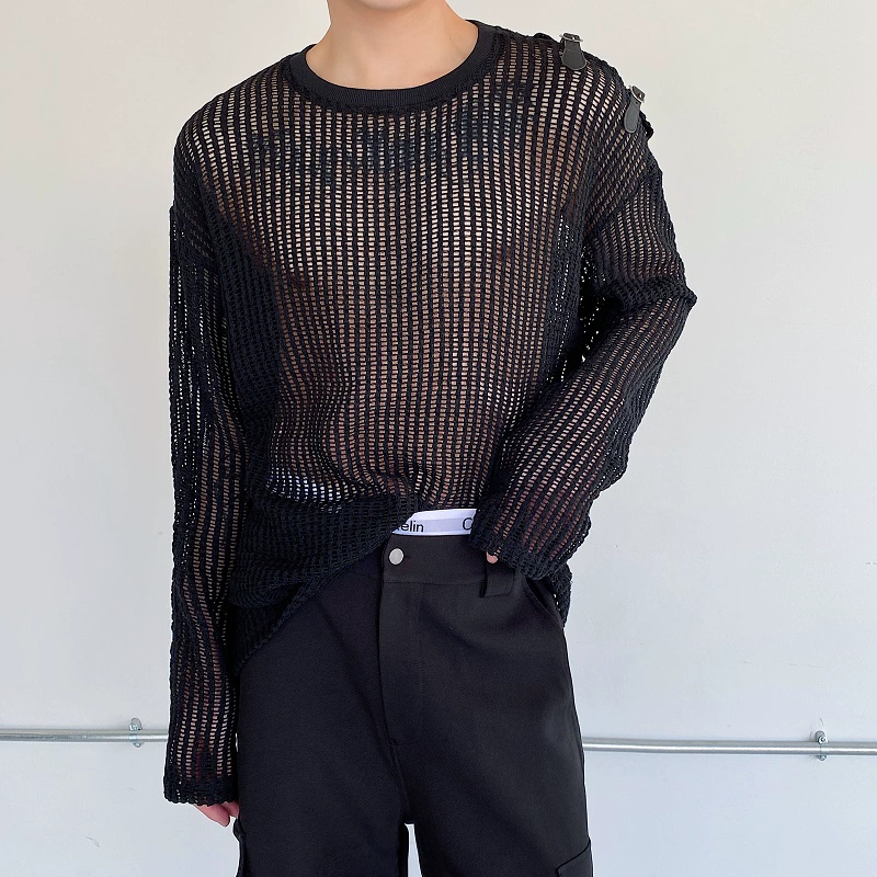 | nameOriginal | Off-the-shoulder mesh long-sleeved men's nightclub work t-shirt |