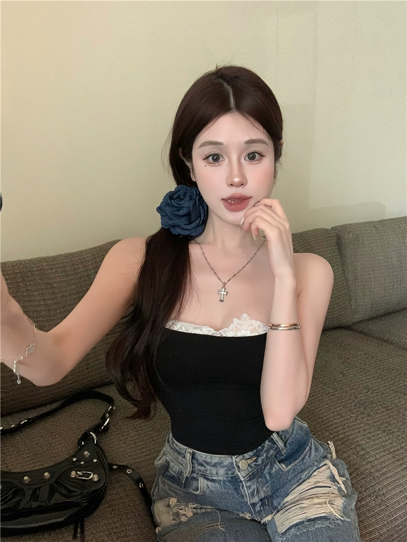 Two fakes with off-shoulder pure lace splicing beautiful back waist-hugging fake