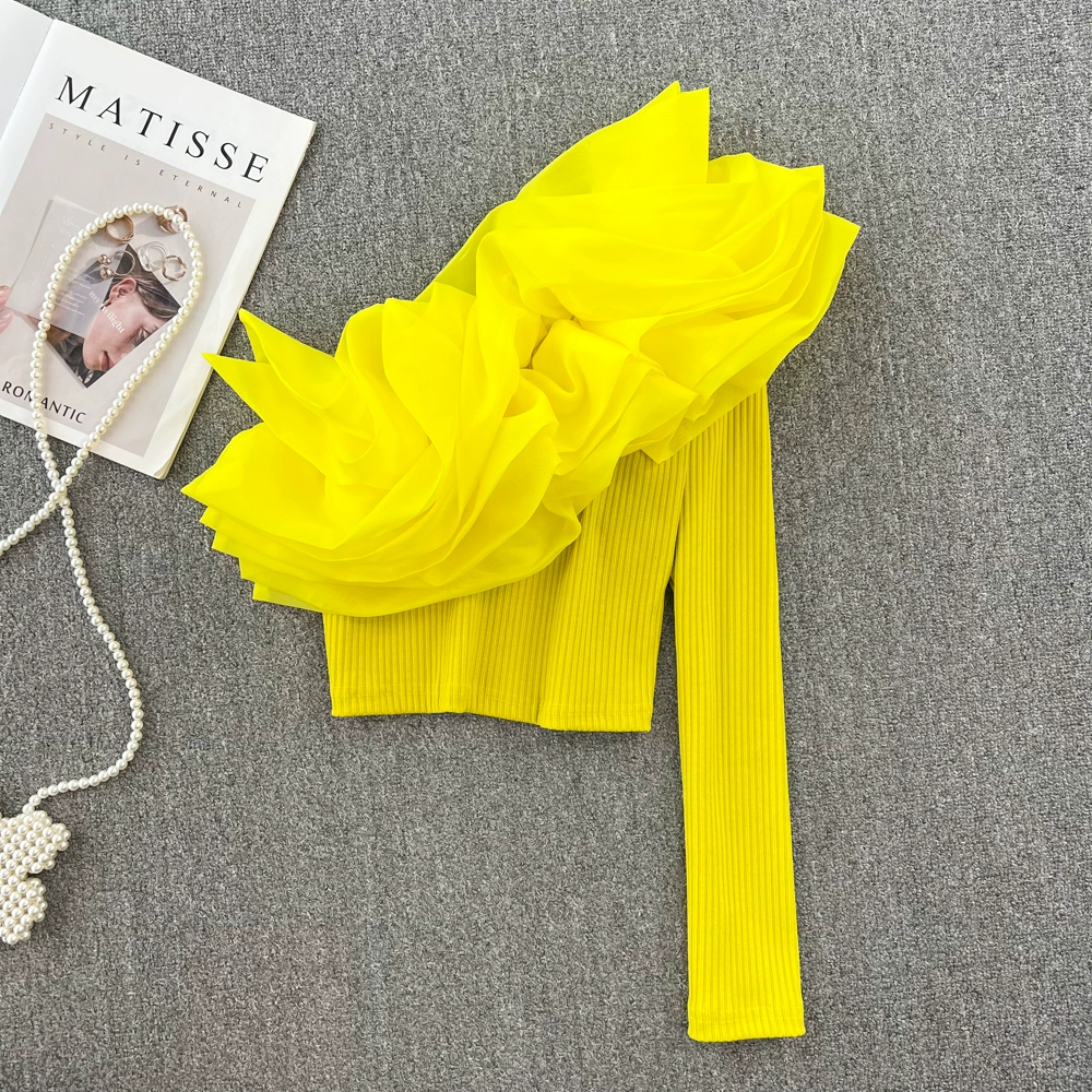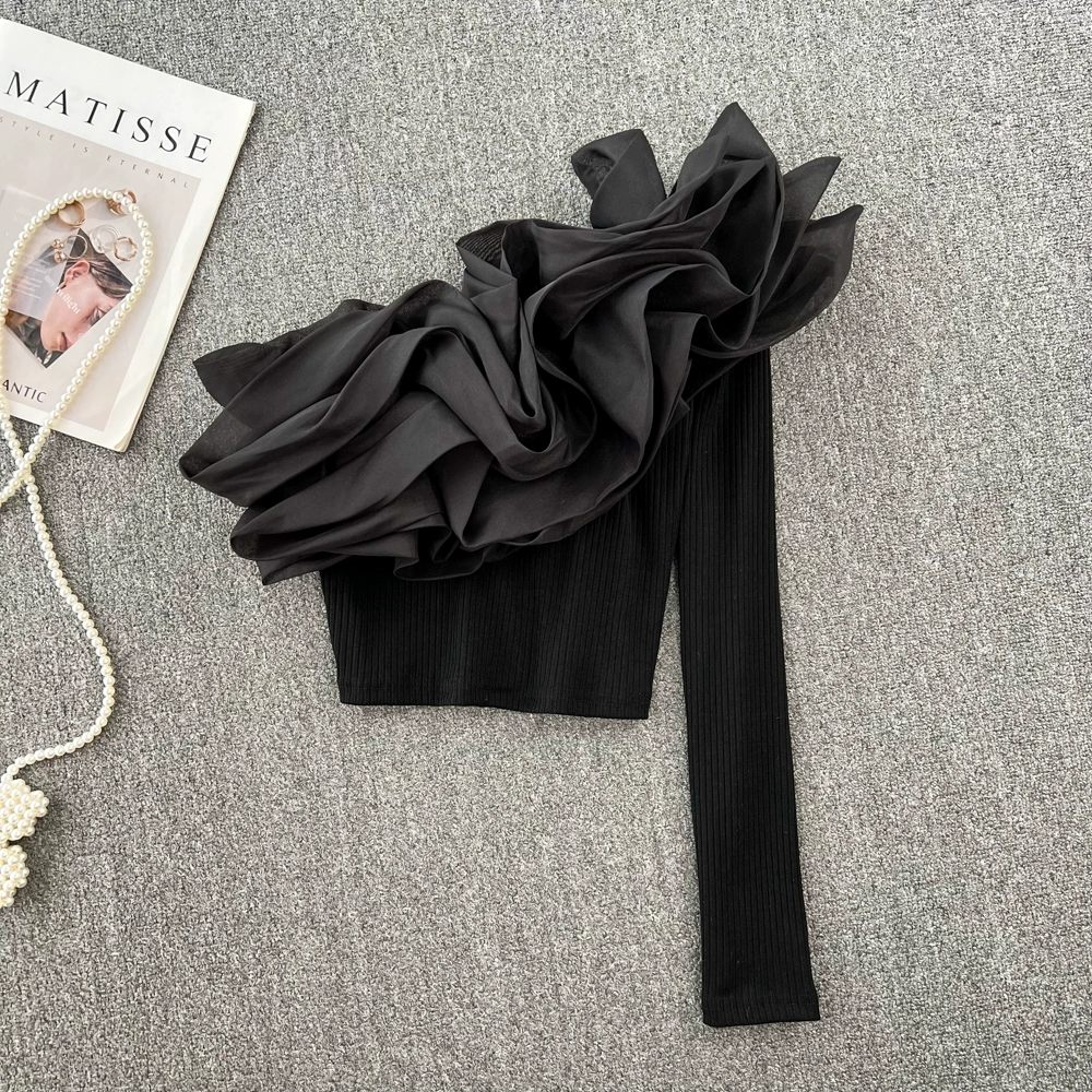 | nameOriginal | Off-the-shoulder retro one-sided slim cropped top T-shirt  |