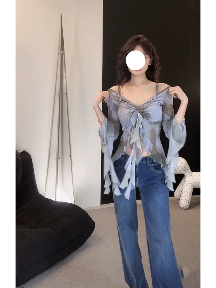 | nameOriginal | Off-the-shoulder Roman Holiday long-sleeved collarbone v-neck min mesh |
