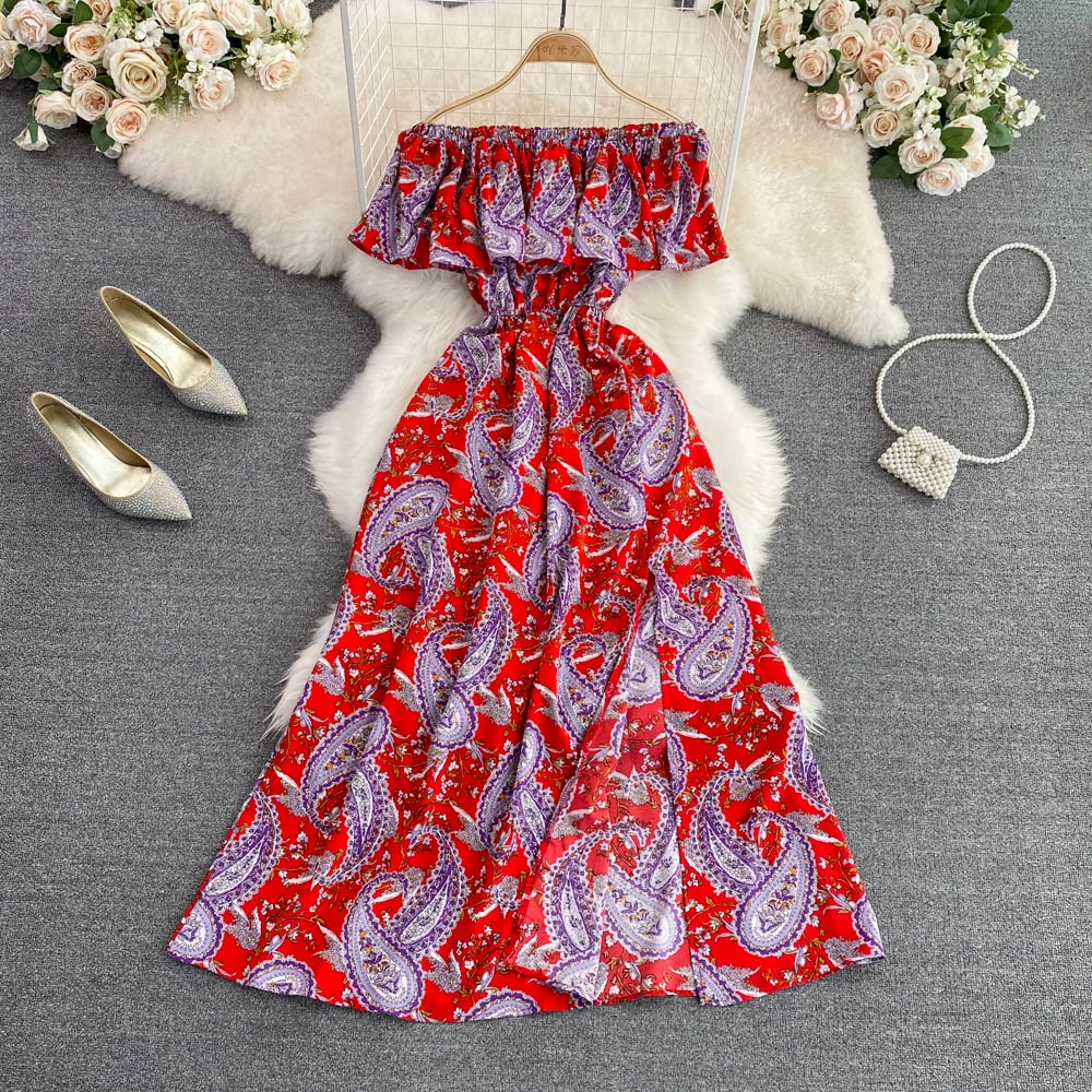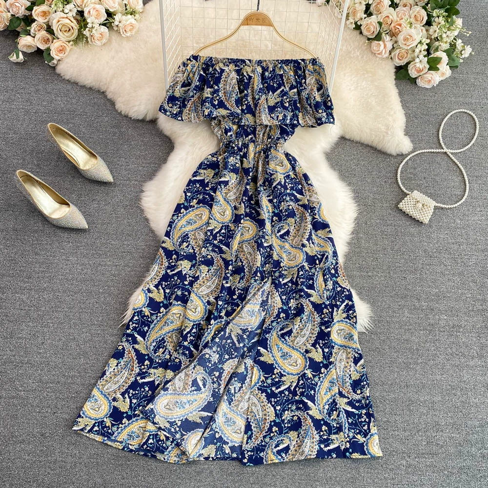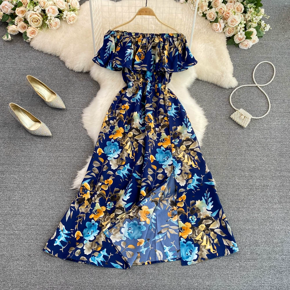 | nameOriginal | Off-the-shoulder slimming A-line seaside vacation dress |