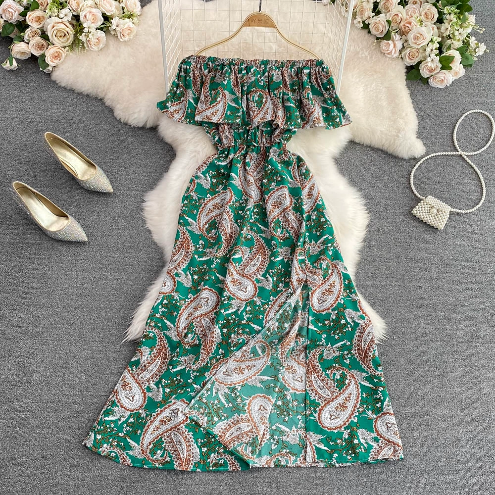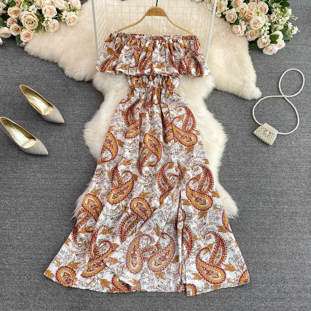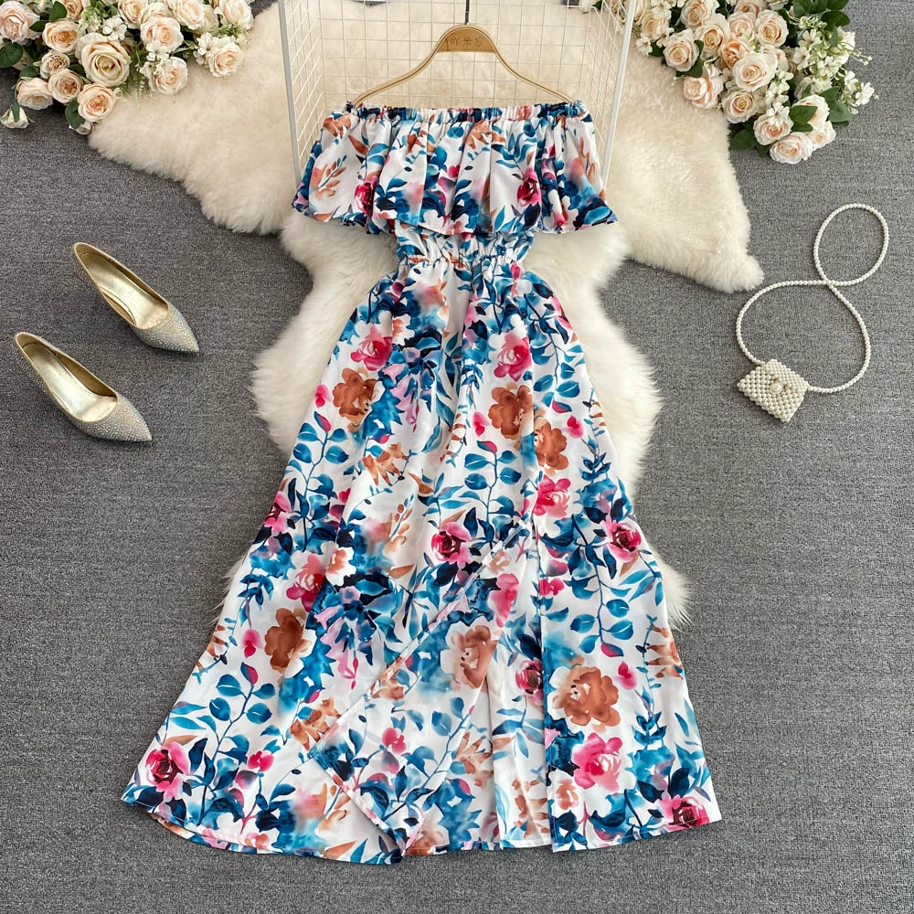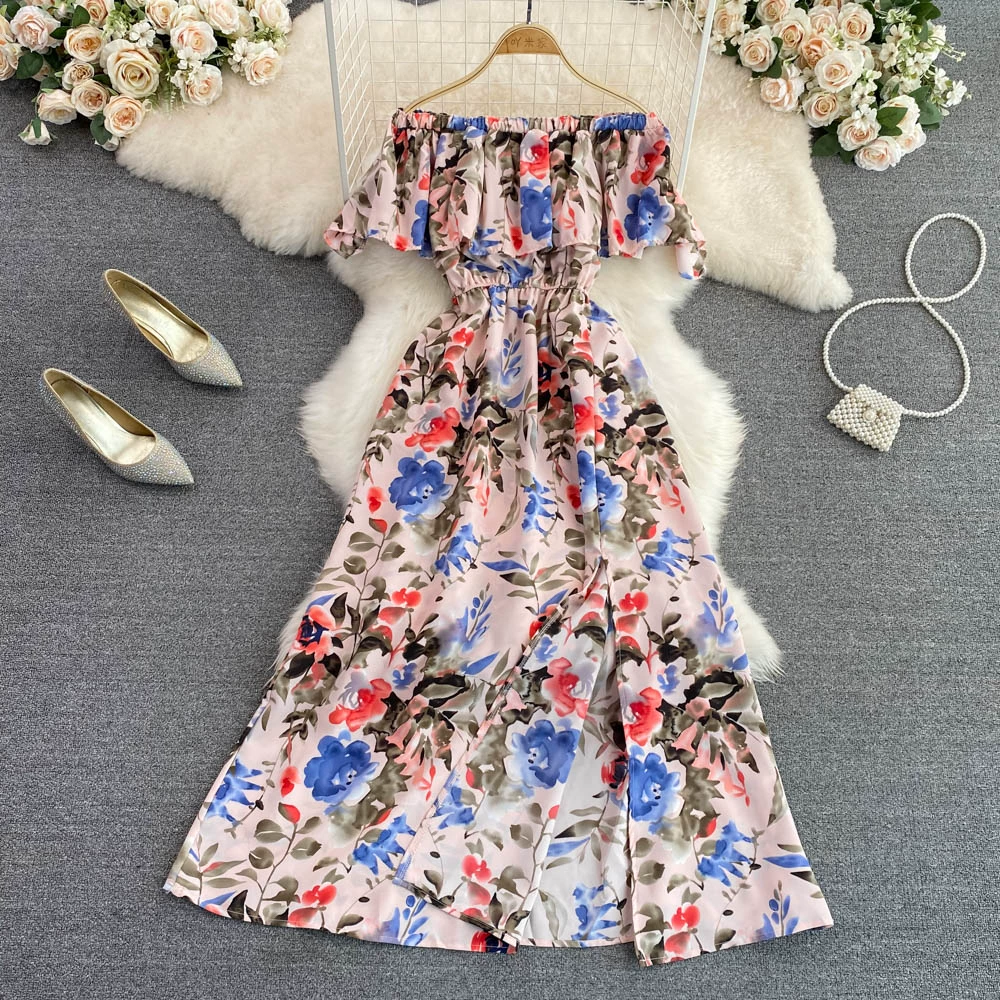 | nameOriginal | Off-the-shoulder slimming A-line seaside vacation dress |