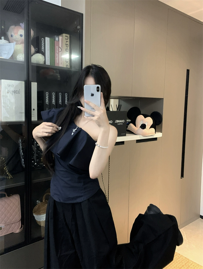 | nameOriginal | Off-the-shoulder slope-neck slim-fit design niche top shirt |