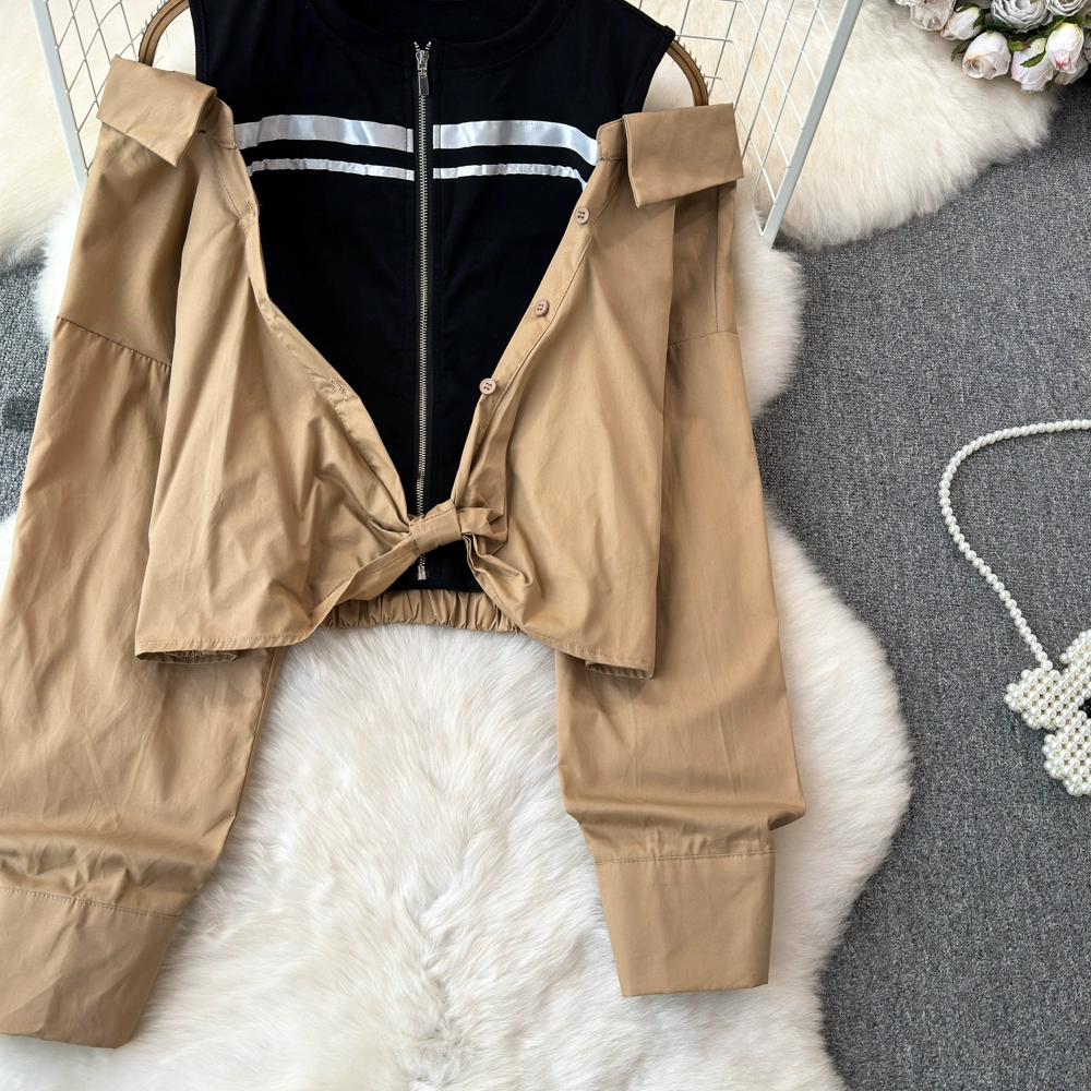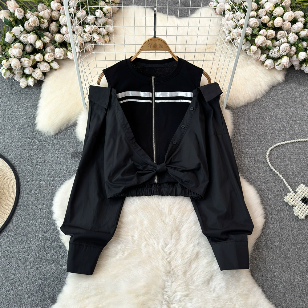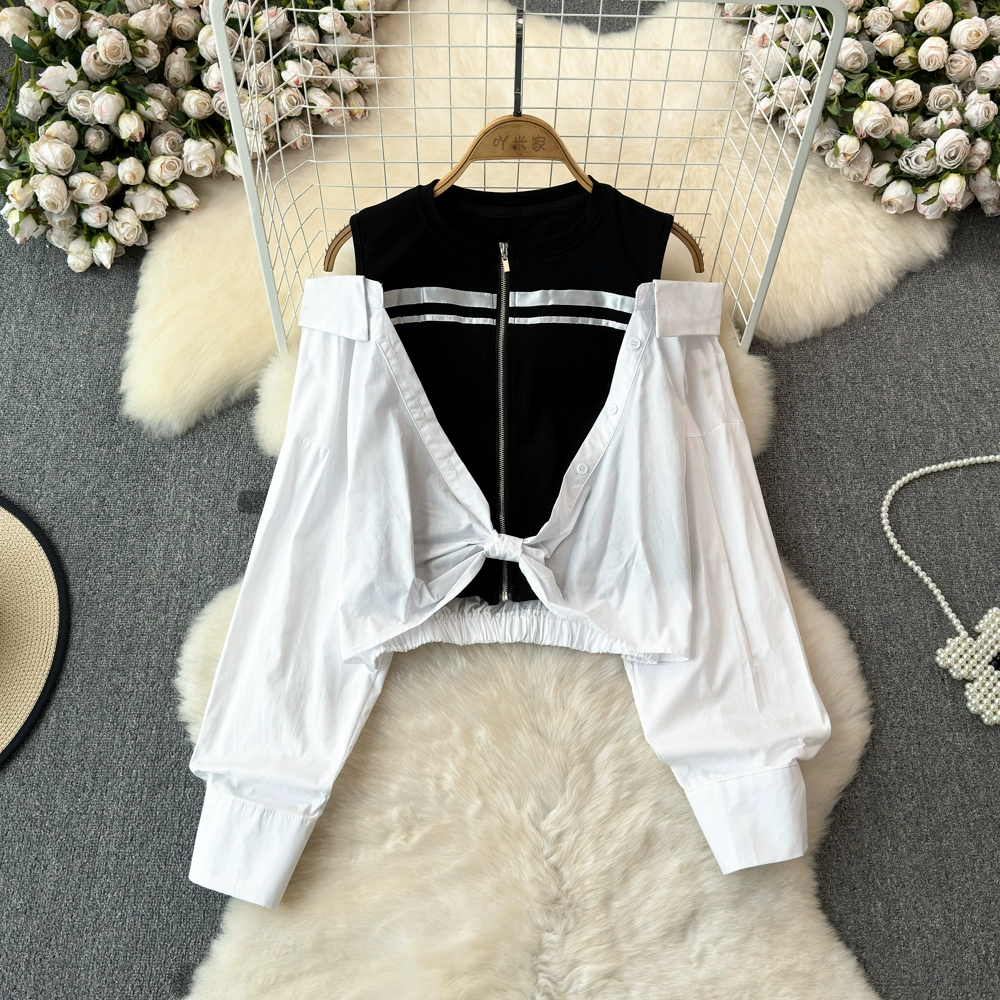 | nameOriginal | Off-the-shoulder spring and summer high-waist slim fit age-reducing temperament shirt |