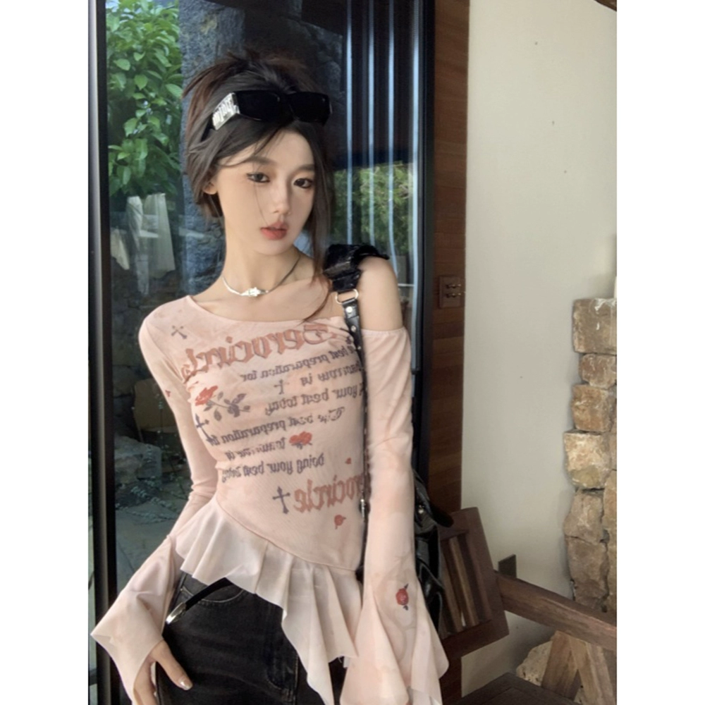 | nameOriginal | Off-the-shoulder summer new style spliced long-sleeved ins T-shirt |
