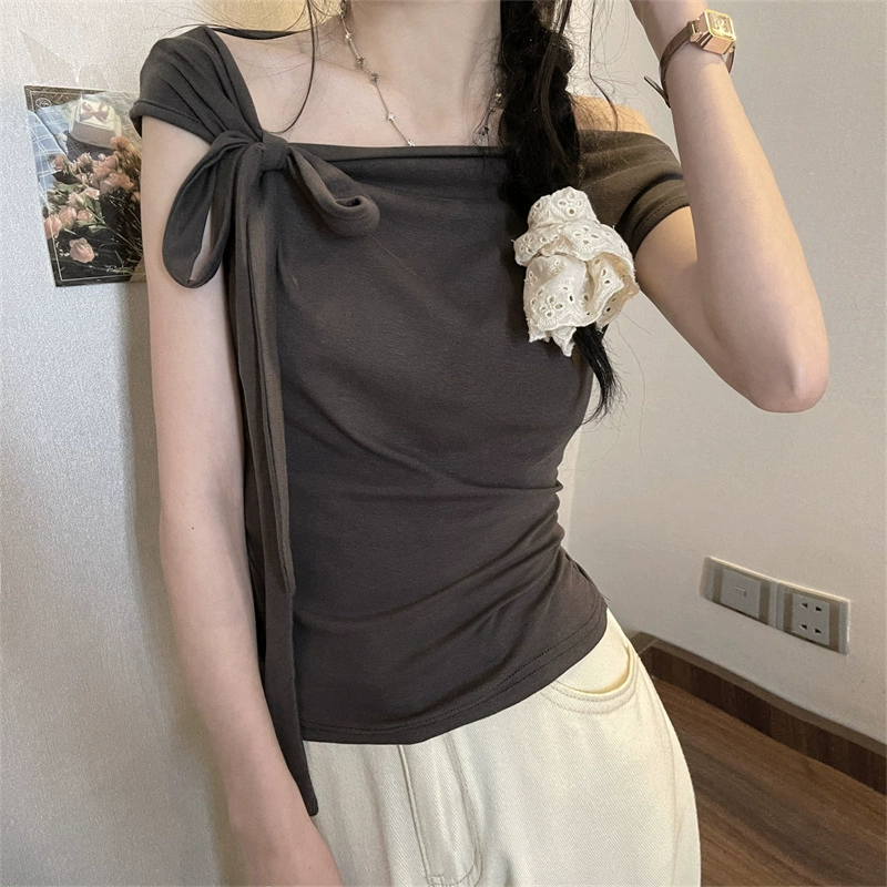 Off-the-shoulder summer new versatile design strappy T-shirt