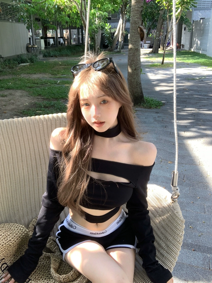 | nameOriginal | Off-the-shoulder summer niche slim-fitting top long-sleeved T-shirt |