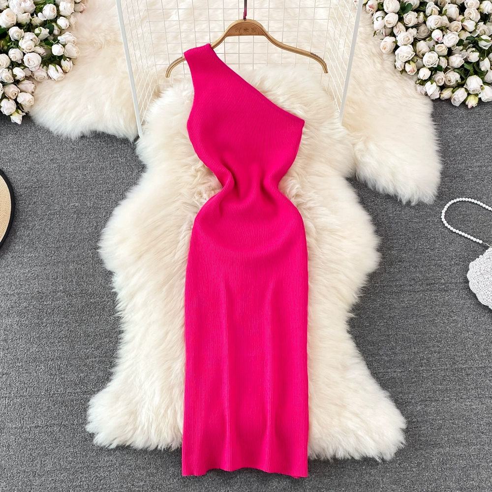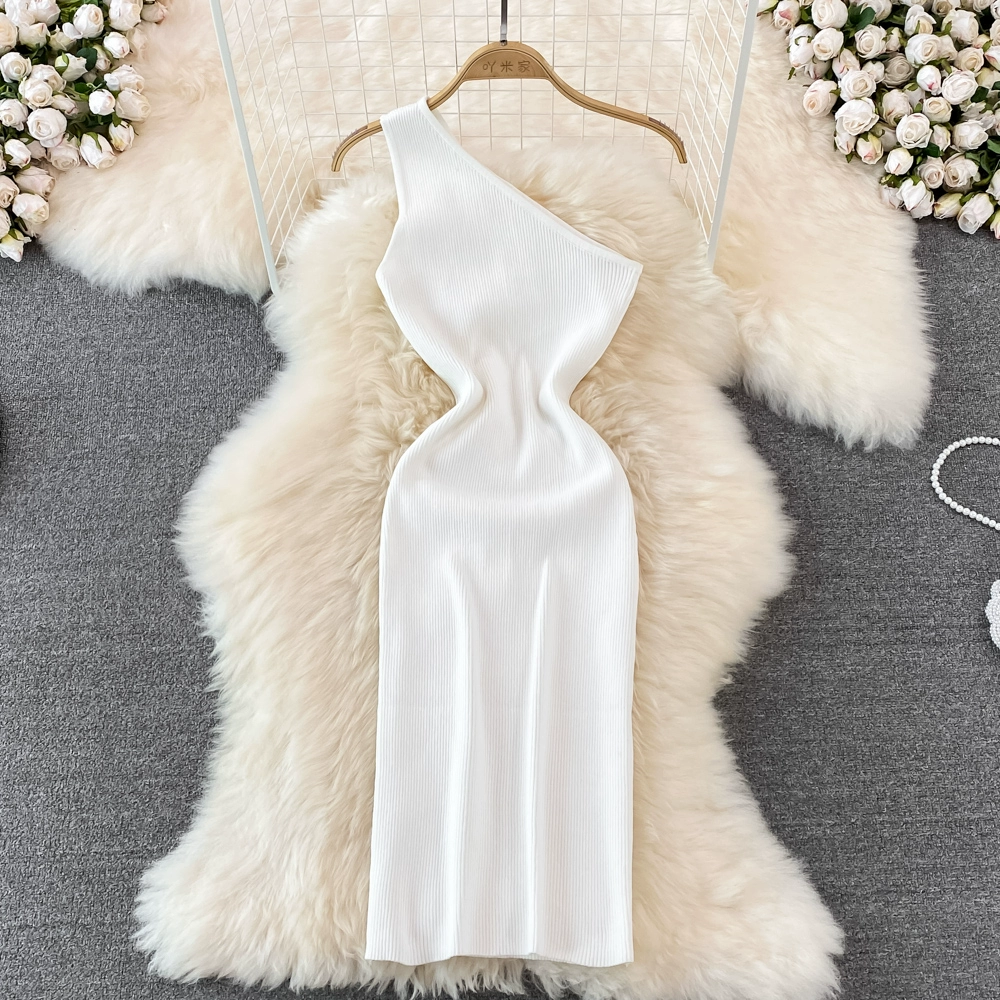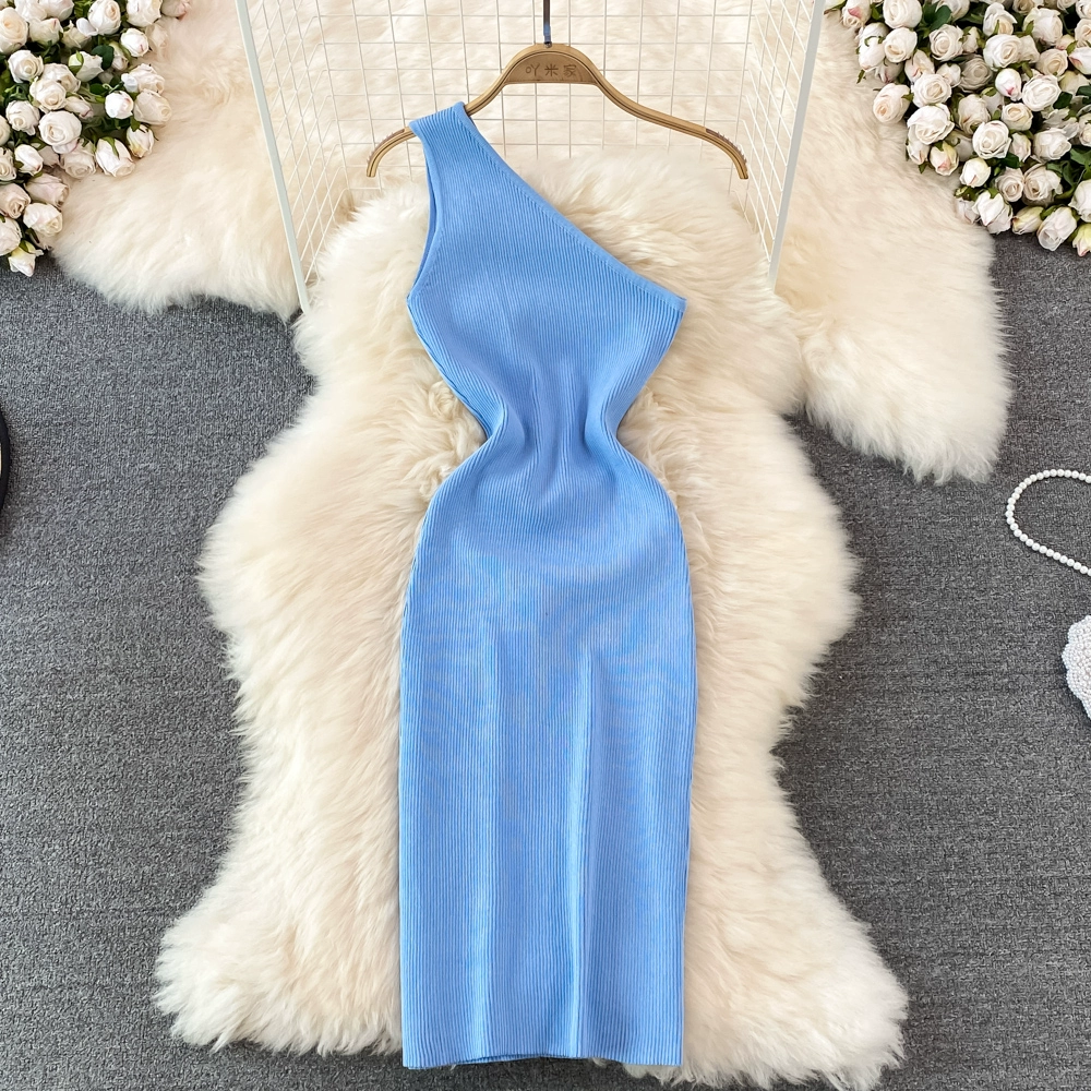 | nameOriginal | Off-the-shoulder summer sexy slant-neck tight-fitting slim dress |