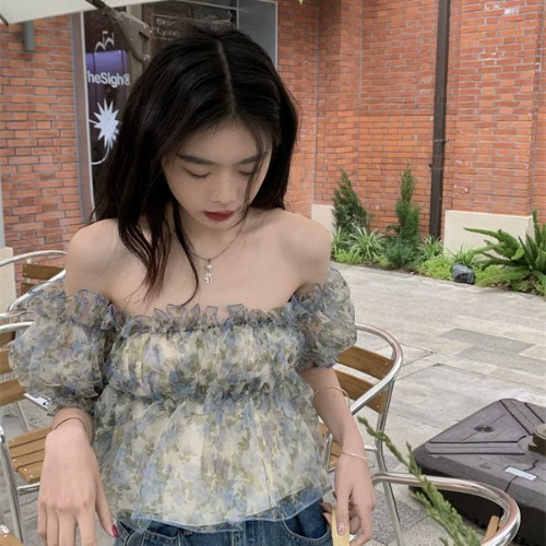| nameOriginal | Off-the-shoulder summer women's niche floral short-sleeved mesh |