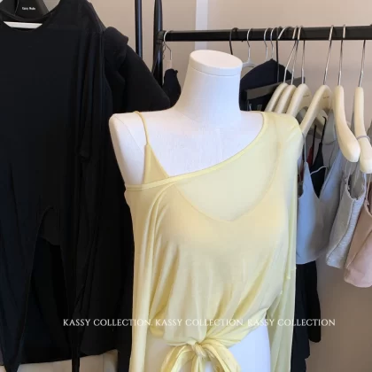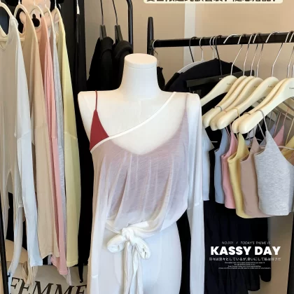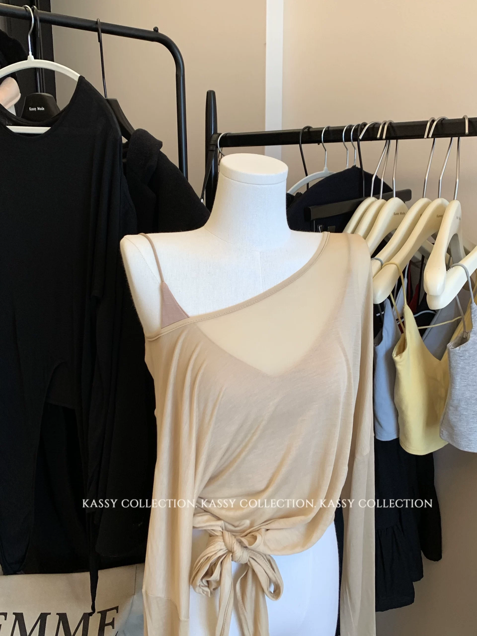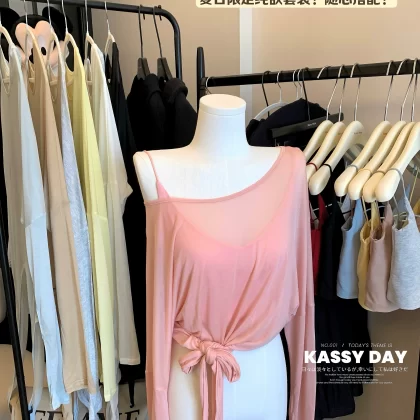 | nameOriginal | Off-the-shoulder thin strappy summer long-sleeved T-shirt |