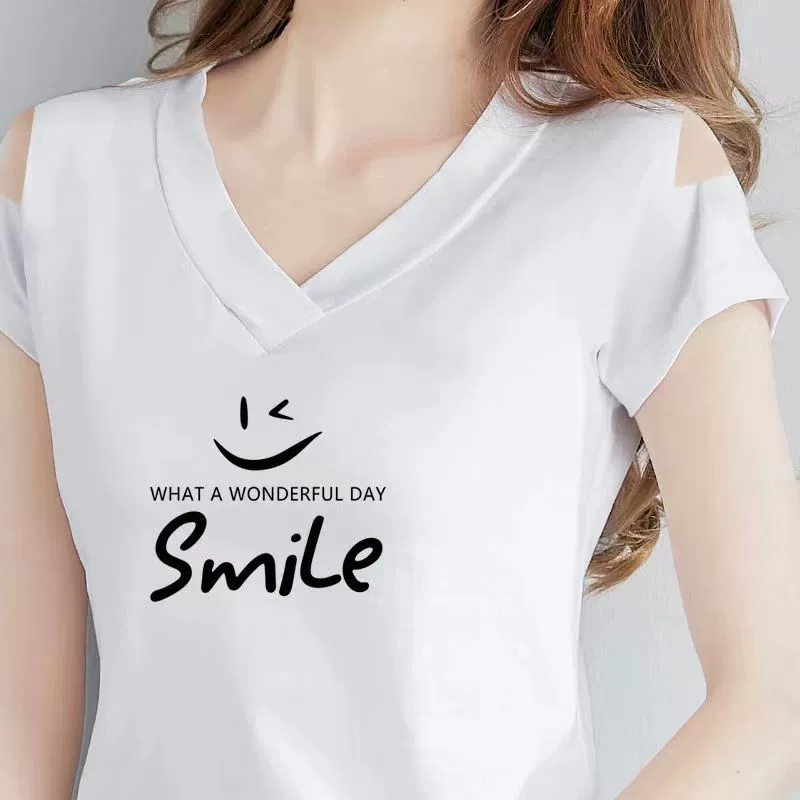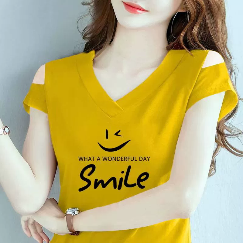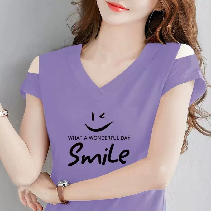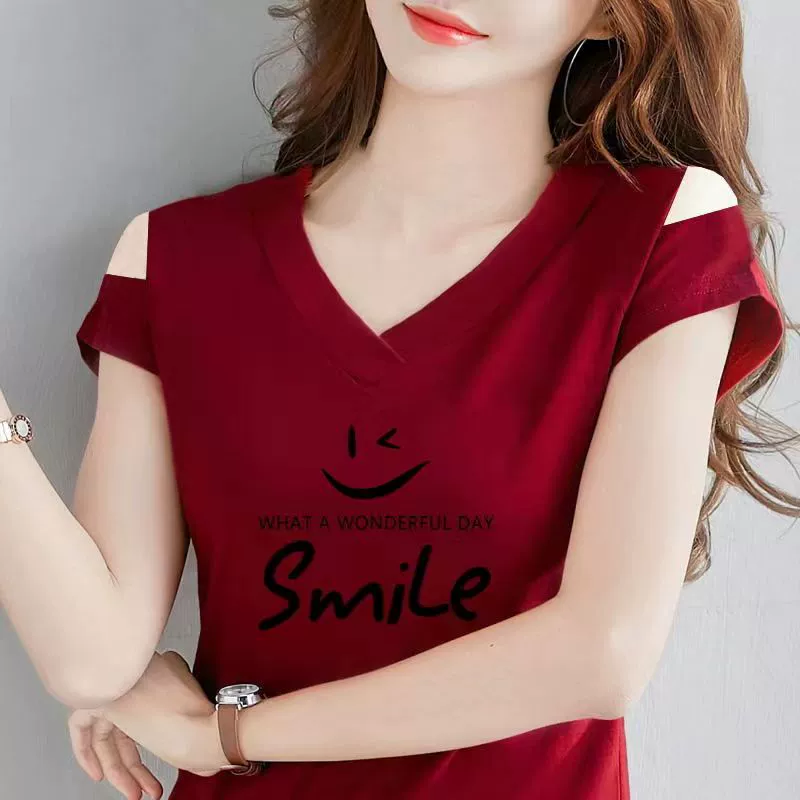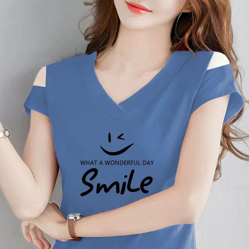| nameOriginal | Off-the-shoulder V-neck t-shirt half-sleeved fashionable summer top |