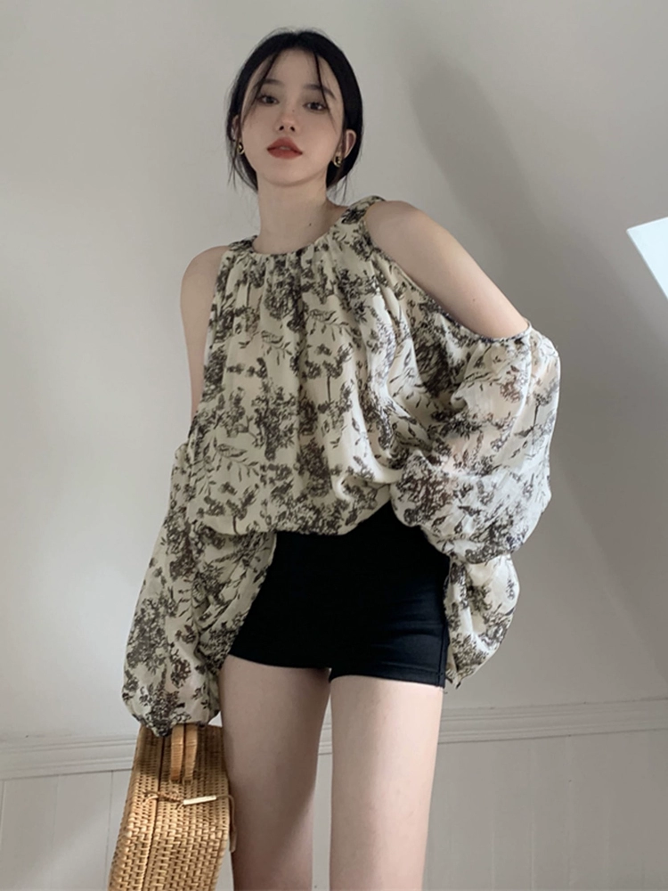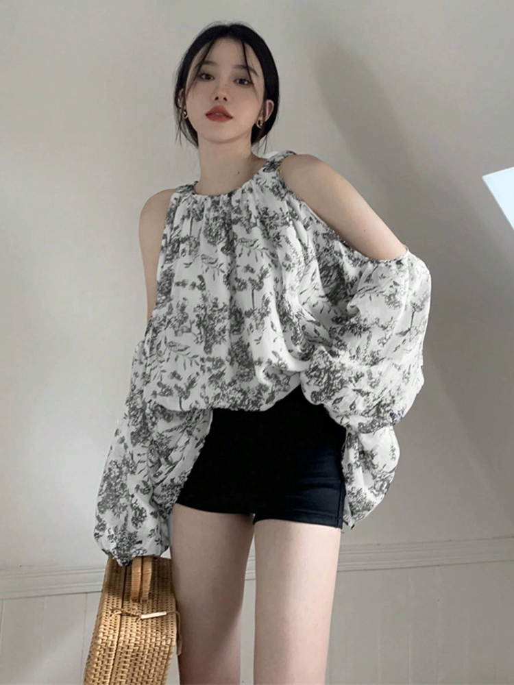| nameOriginal | Off-the-shoulder vintage floral ink painting artistic shirt |
