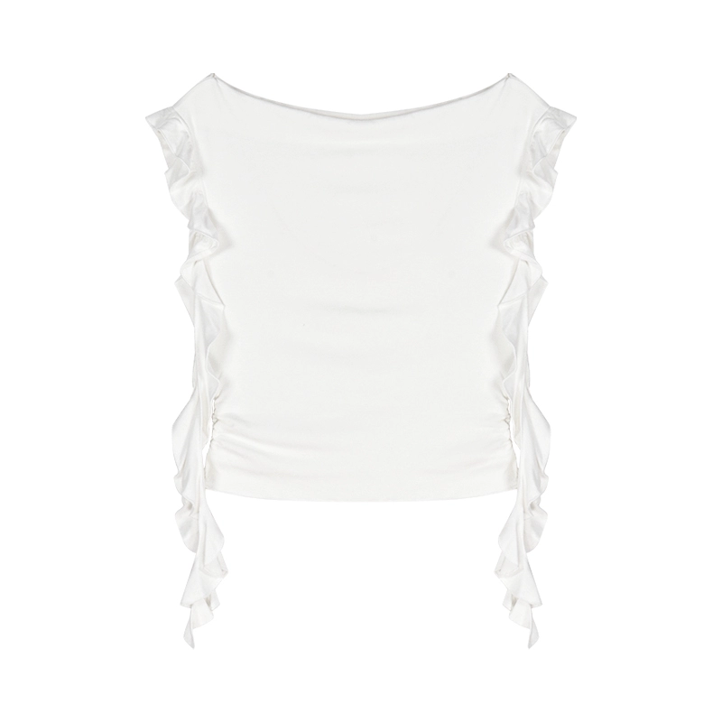 | nameOriginal | Off-the-shoulder white slim-fitting summer slimming ruffled short sleeves |