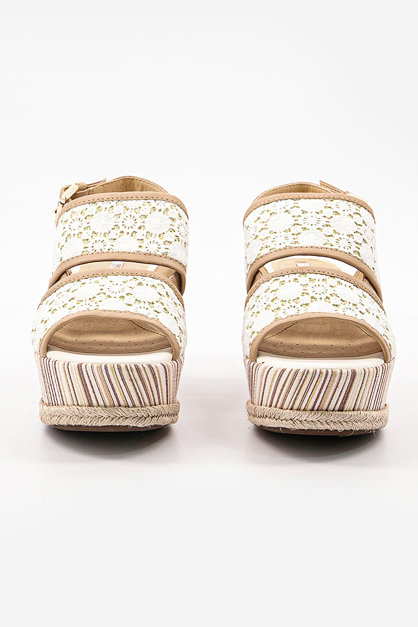 | descriptionOriginal | Heel Height : 3.15" / 8 cm, Heel Style : Wedge heel, Ideal For : Women, Shoe Closure : Adjustable buckle closure, Shoe Width : Standard, Sole Material : Rubber sole, Toe Style : Open toe, Disclaimer : Product color may slightly vary due to photographic lighting sources or your monitor settings., Embellished : Lace, Occasion : Casual, Shoe Material : Textile, Color Family : Off White, |
