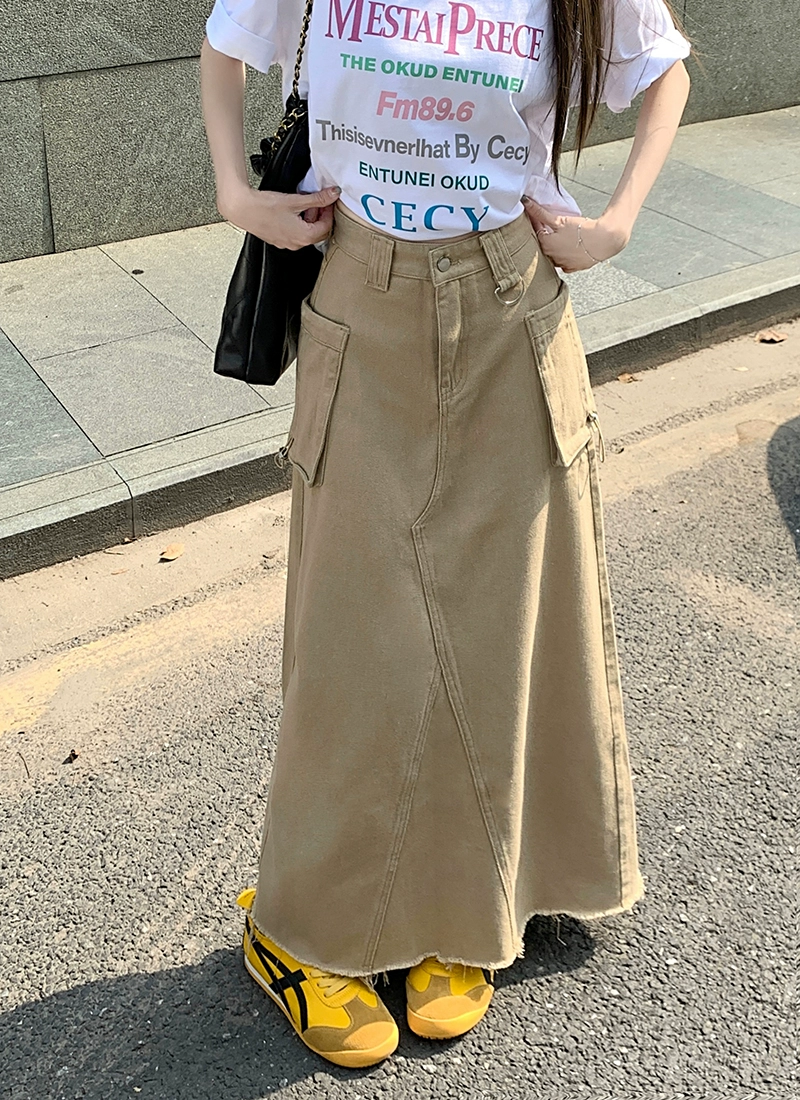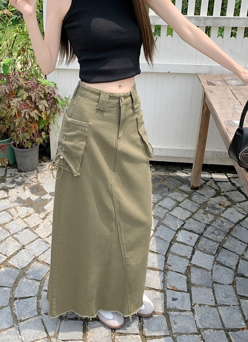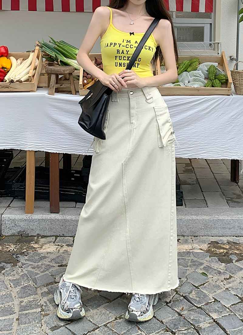 | nameOriginal | Off-white pocket raw edge denim skirt overalls |