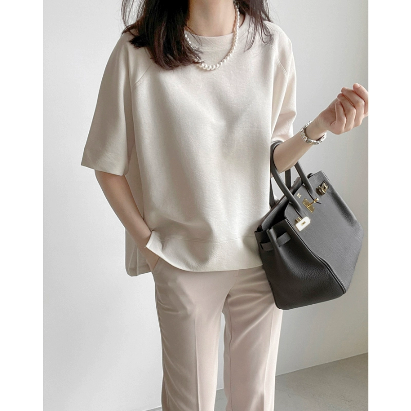 | nameOriginal | Off-white raglan sleeve T-shirt for women 2024 summer slit design temperament high-end chic short-sleeved top for women |