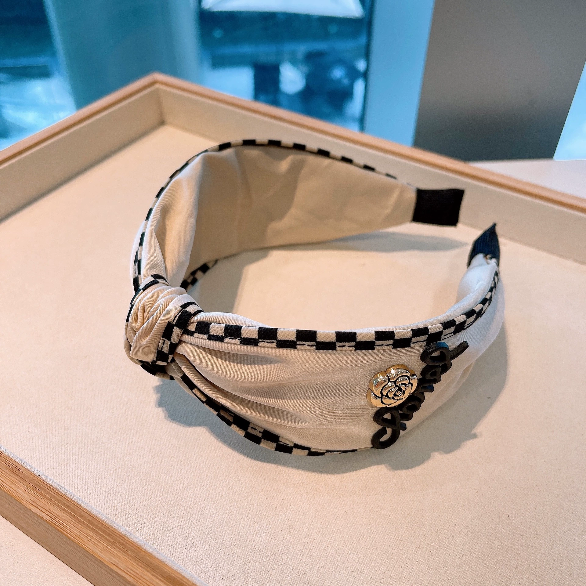 | nameOriginal | Off-white retro color-blocked plaid twisted hairband fragrant grandma |