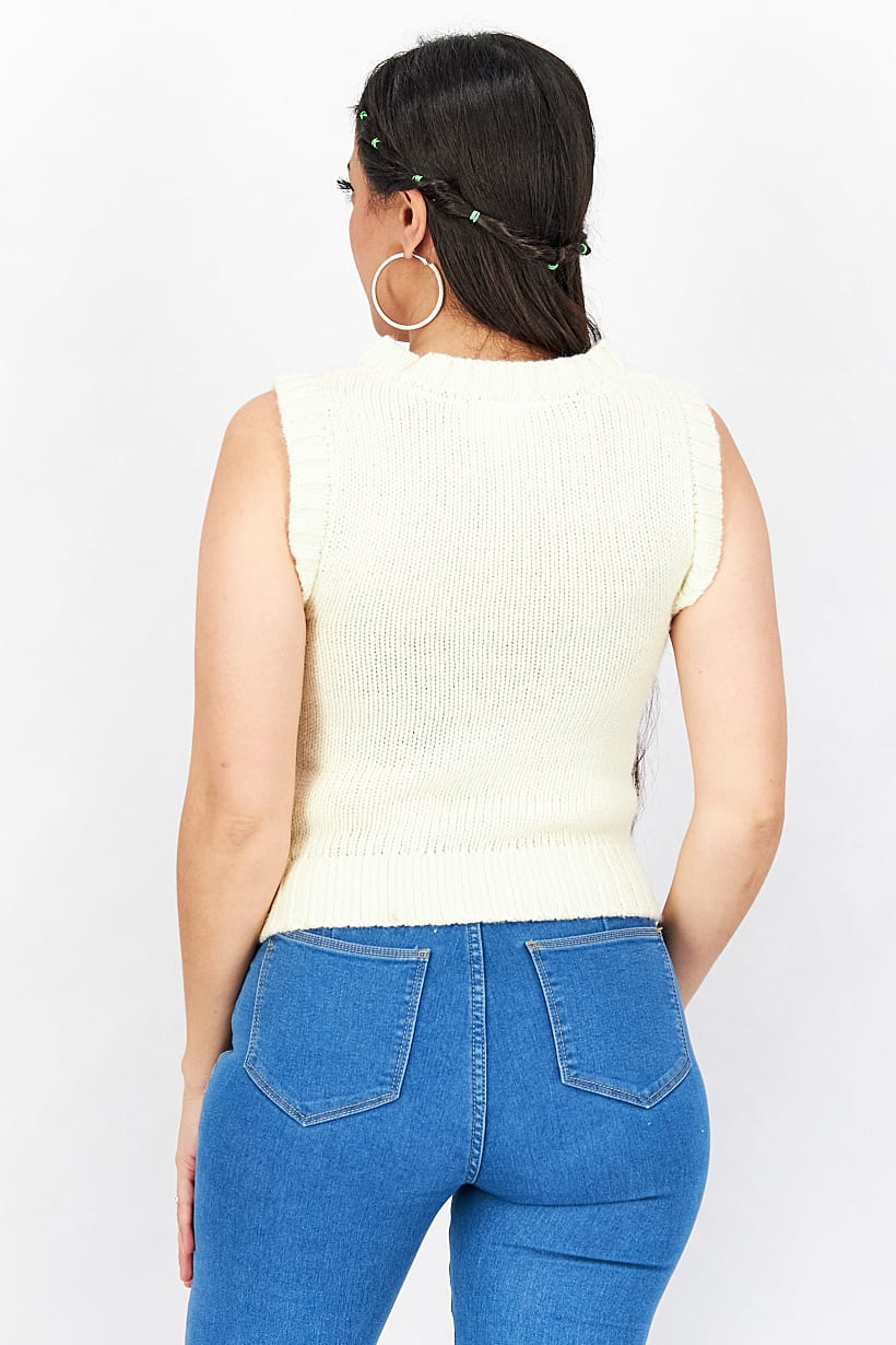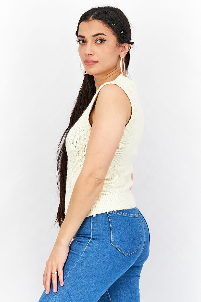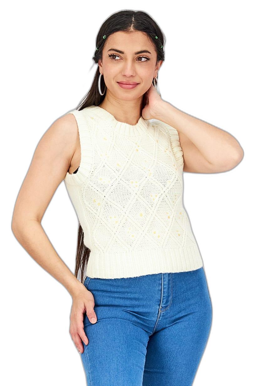 | nameOriginal | Women Crew Neck Sleeveless Embroidered Knitted Top, Off White |