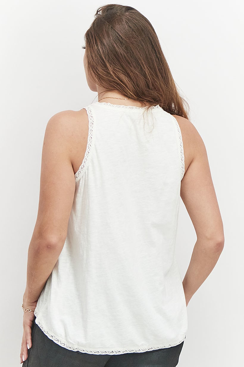 | descriptionOriginal | Care : Machine washable, Fit : Regular fit, Size shown : International, Top Style : Tank Top, Types of Hem : Straight hem, Types of Neckline & Collar : Round neckline, Types of Sleeve : Sleeveless, Fabrics : 100% Cotton, Occasion : Casual, Pattern & Print : Embroidered, Types of Closures : Pullover, Color Family : Off White, |