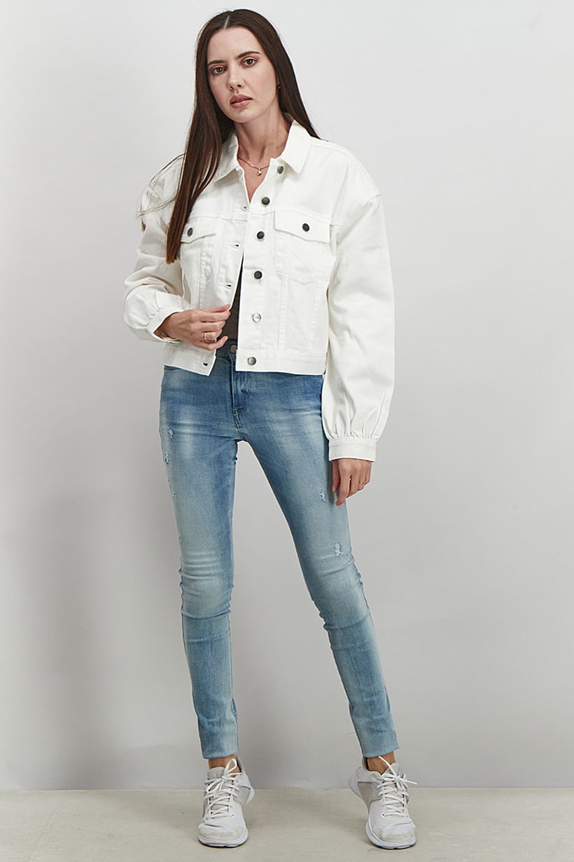 | sub_Categories | Women Clothing, Sportswear, women regular fit long sleeve sportswear denim jacket off white |