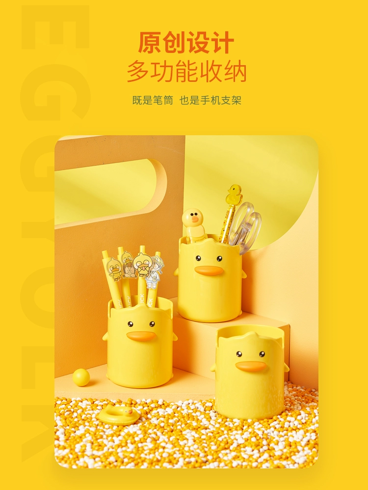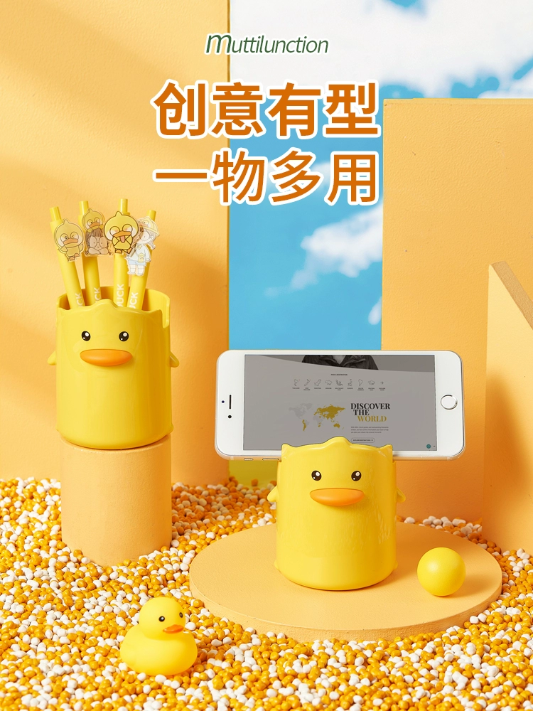 | nameOriginal | Office study yellow duck cute creative cartoon desktop plastic pen holder multi-functional mobile phone holder stationery storage |
