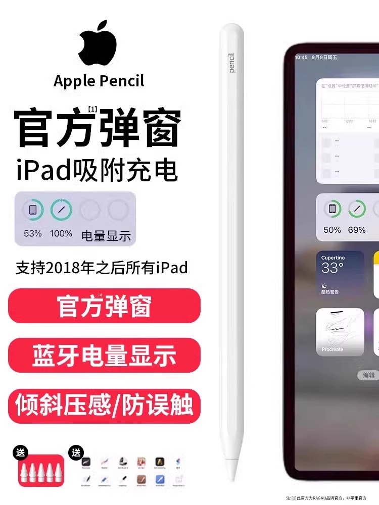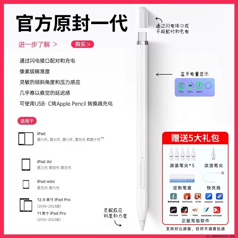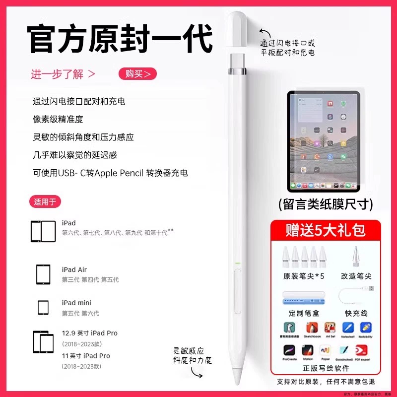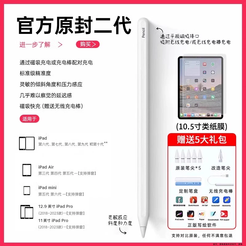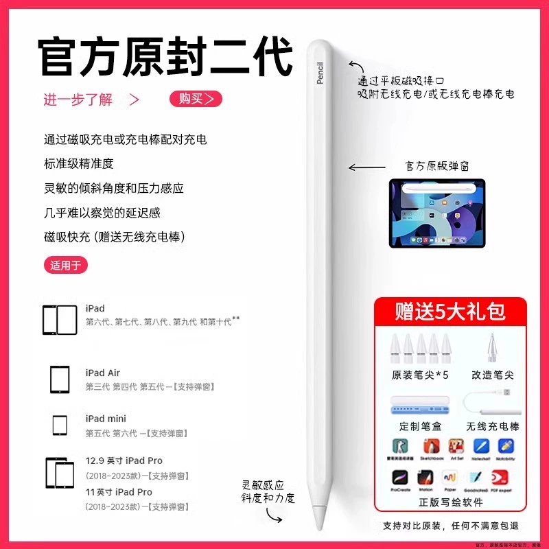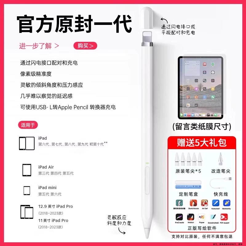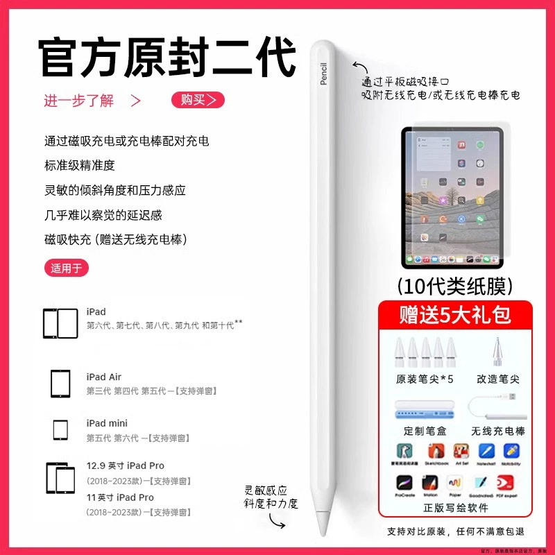 [Official Original] Apple Pencil Second Generation Huaqiangbei Apple iPad Pencil Capacitive Pen Apple Pencil First Generation iPad Stylus 10 Touch Screen Air5 Tablet Stylus 9