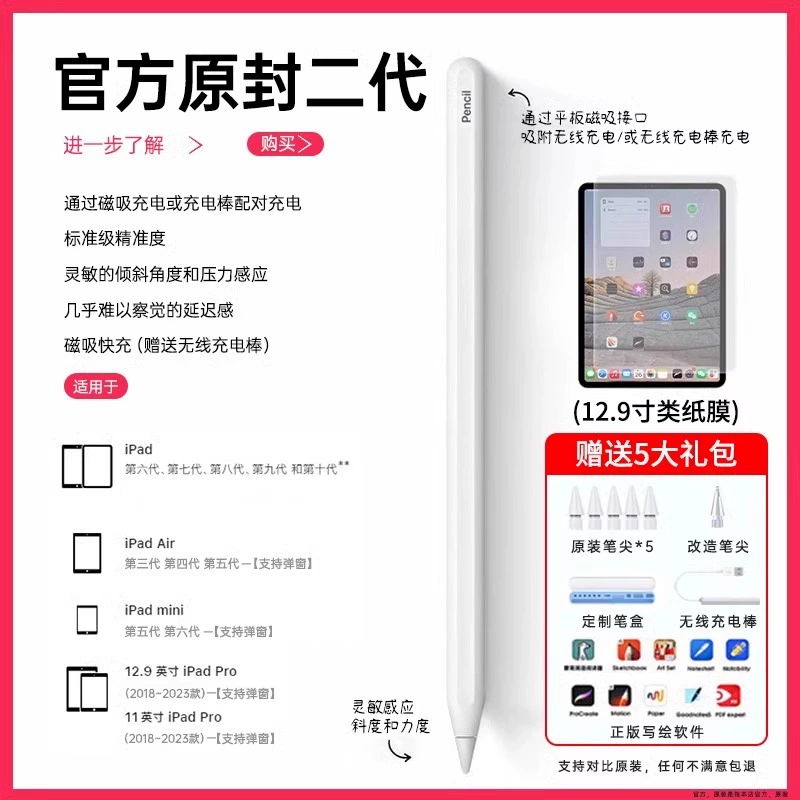 | nameOriginal | [Official Original] Apple Pencil Second Generation Huaqiangbei Apple iPad Pencil Capacitive Pen Apple Pencil First Generation iPad Stylus 10 Touch Screen Air5 Tablet Stylus 9 |
