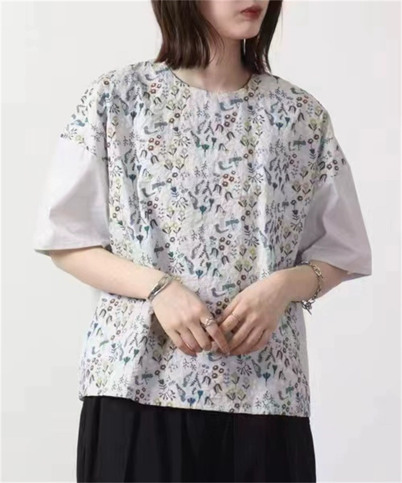 | nameOriginal | Official website heavy industry embroidered short-sleeved shirt for women 2024 summer new sweet round neck pure cotton large size high waist shirt |