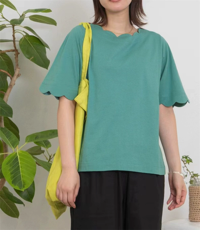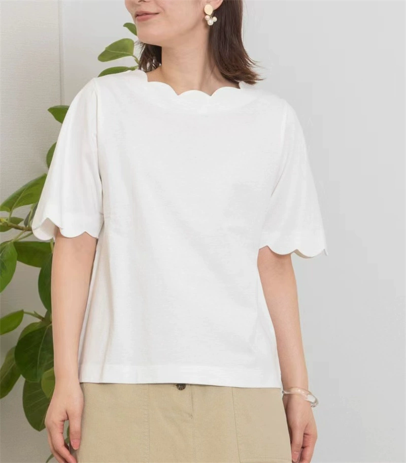 | nameOriginal | Official website high count cotton solid color short-sleeved T-shirt for women 2024 summer new sweet wave round neck pure cotton fashion T-shirt |